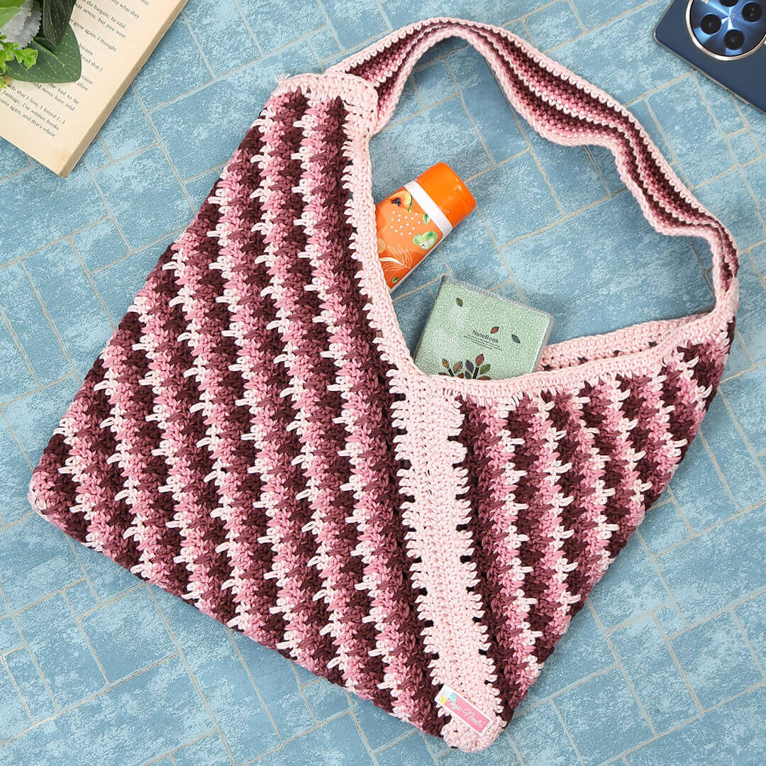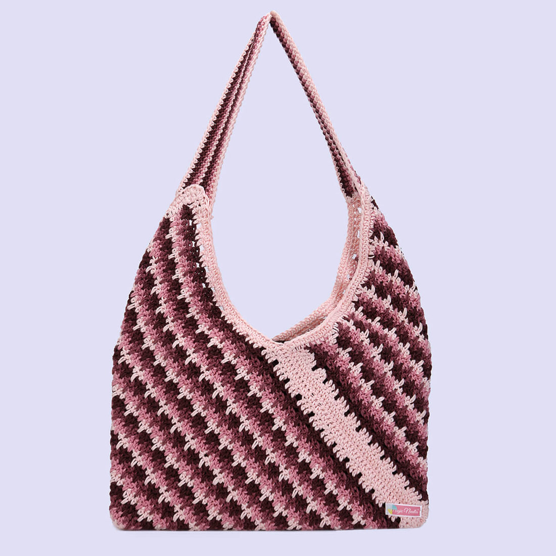 Pink Handmade Self Design Waves Crochet Pullover - 10415