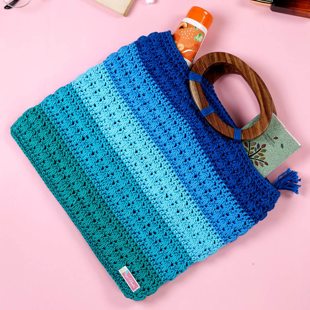 Blue Handmade Self Design Waves Crochet Pullover - 10419