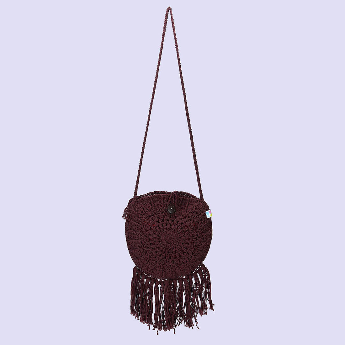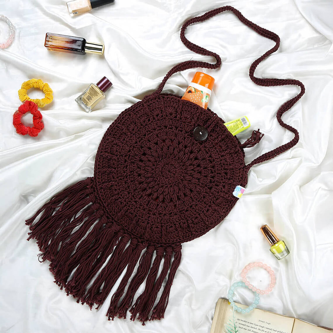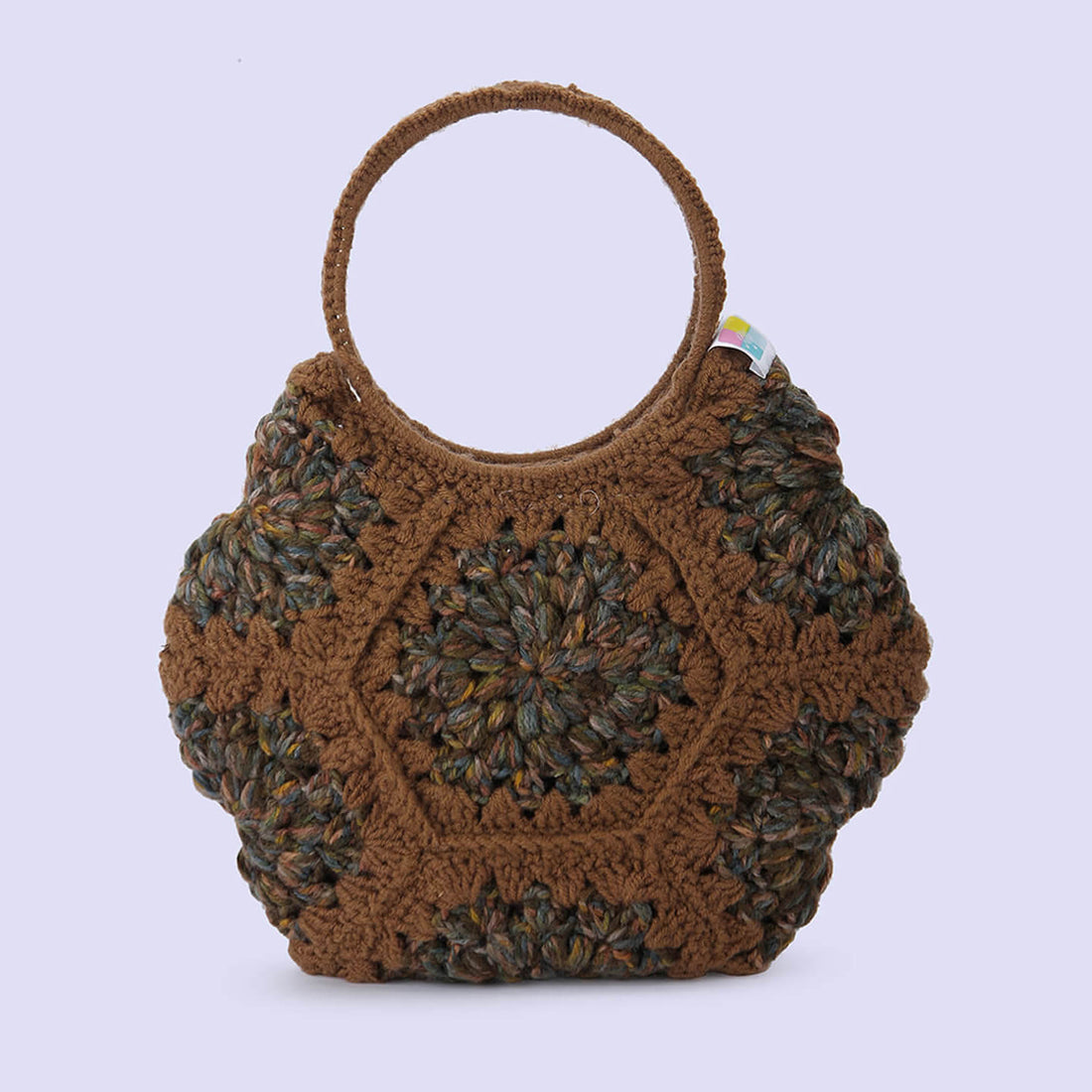Brown Handmade Self Design Waves Crochet Pullover - 10417