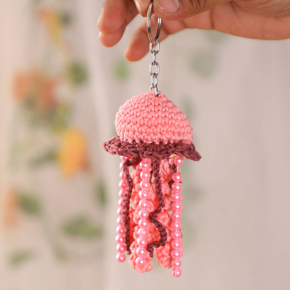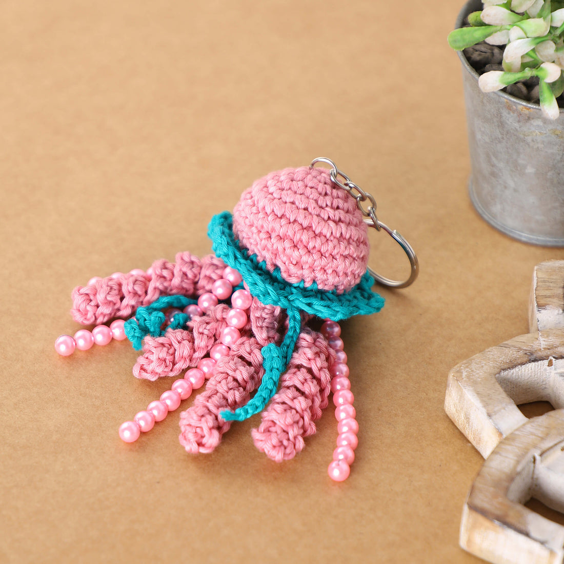 Handmade Crochet Jelly Fish Keychain-Pretty Pink