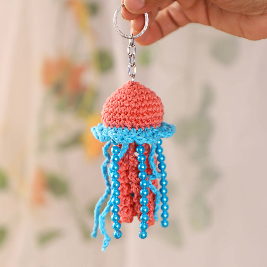 Handmade Crochet Jelly Fish Keychain-Sea Blue