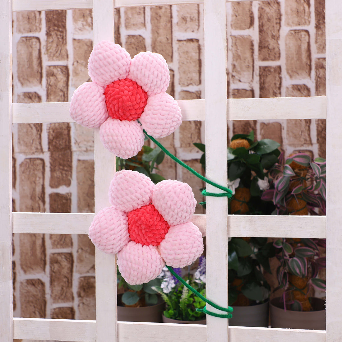 Handmade Amigurumi Flower with Bendable Stem - Pink/White