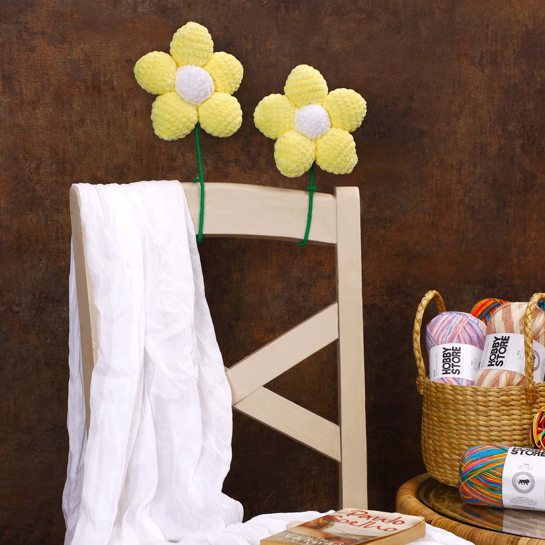 Handmade Amigurumi Flower with Bendable Stem - Yellow/White