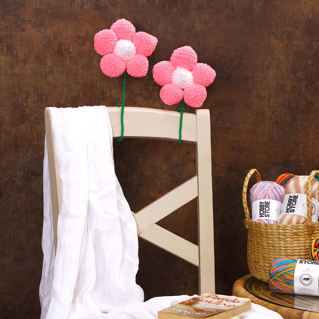 Handmade Amigurumi Flower with Bendable Stem - Pink/Fuchsia