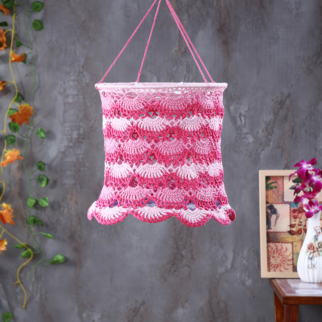 Handmade Crochet Lantern - Pink and Blue