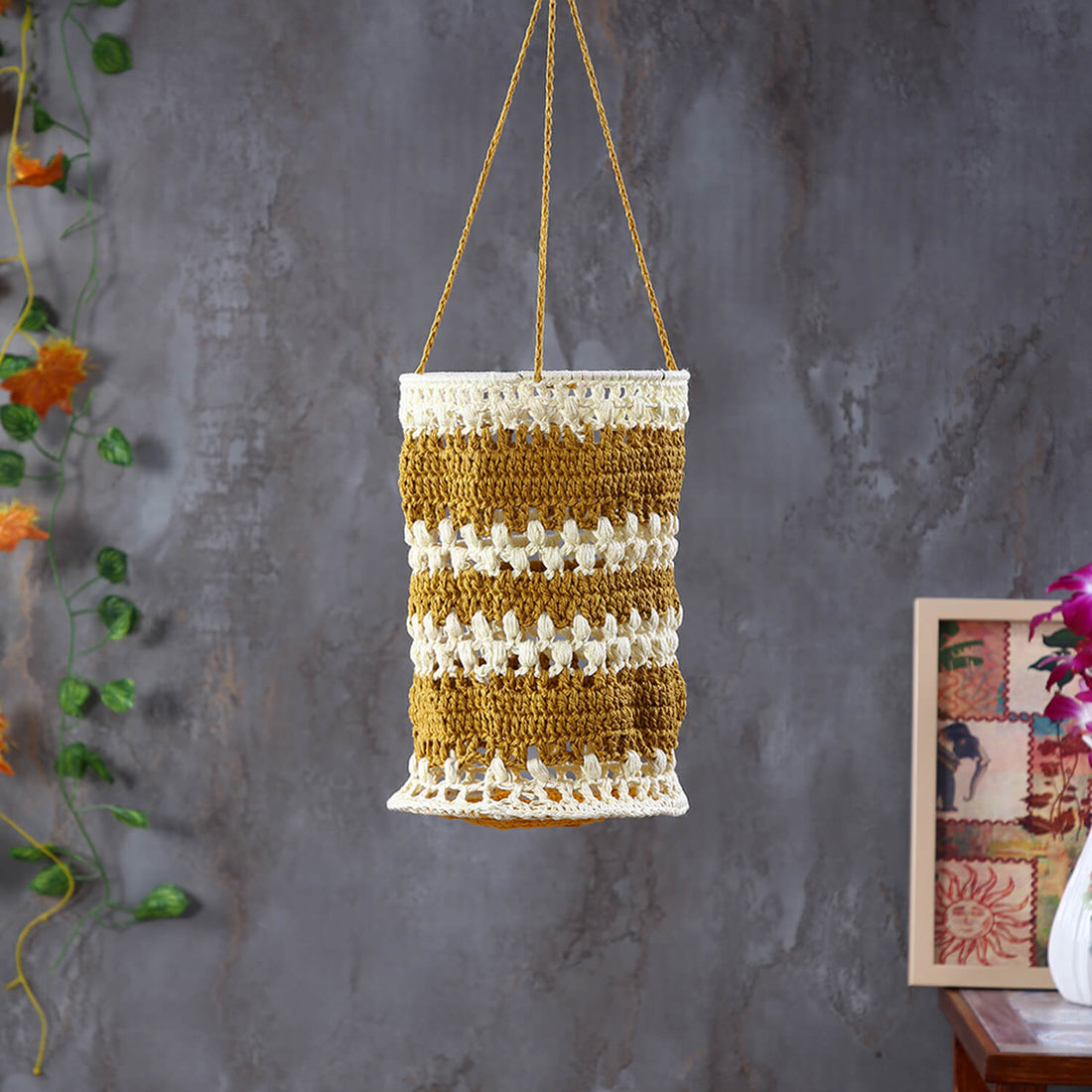 Bring a warm, cozy ambiance to your space with our handcrafted crochet lanterns. Cotton Blend...