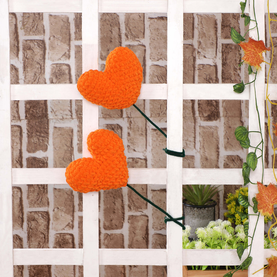 Handmade Amigurumi Heart on a Bendable Stick - Orange