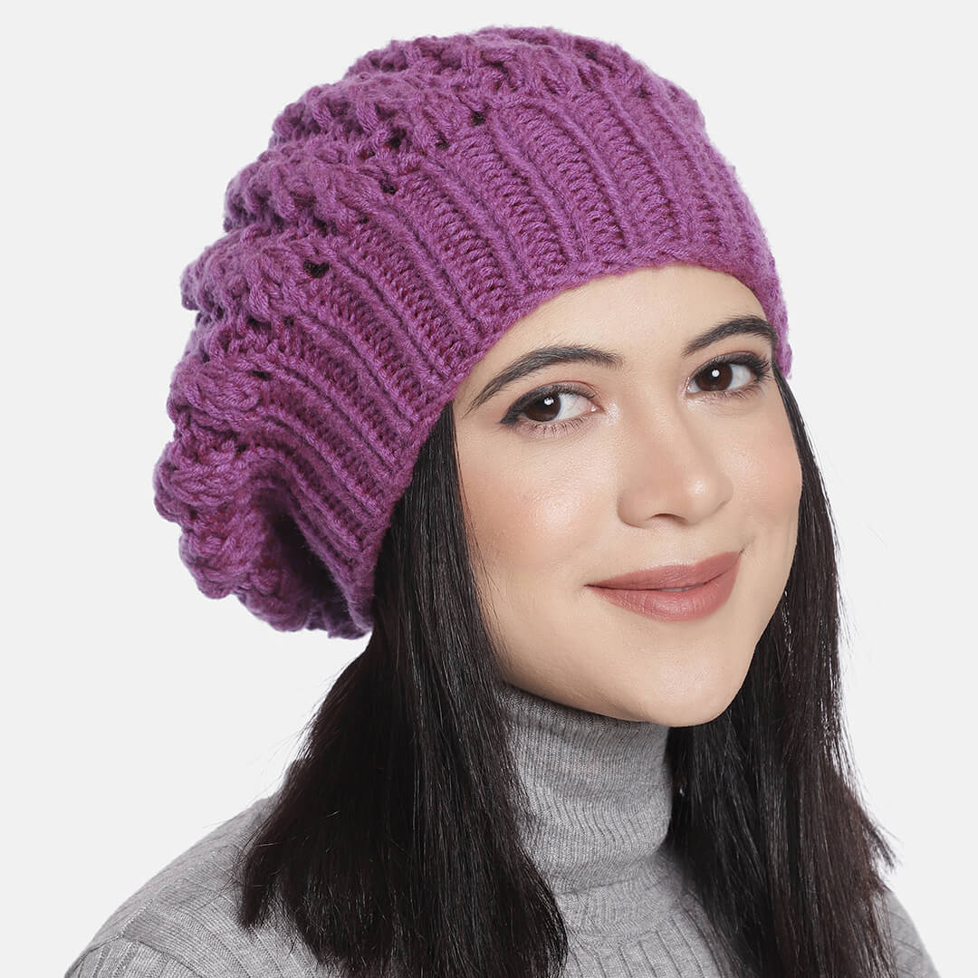 Purple Self-Design Beanie - 1681