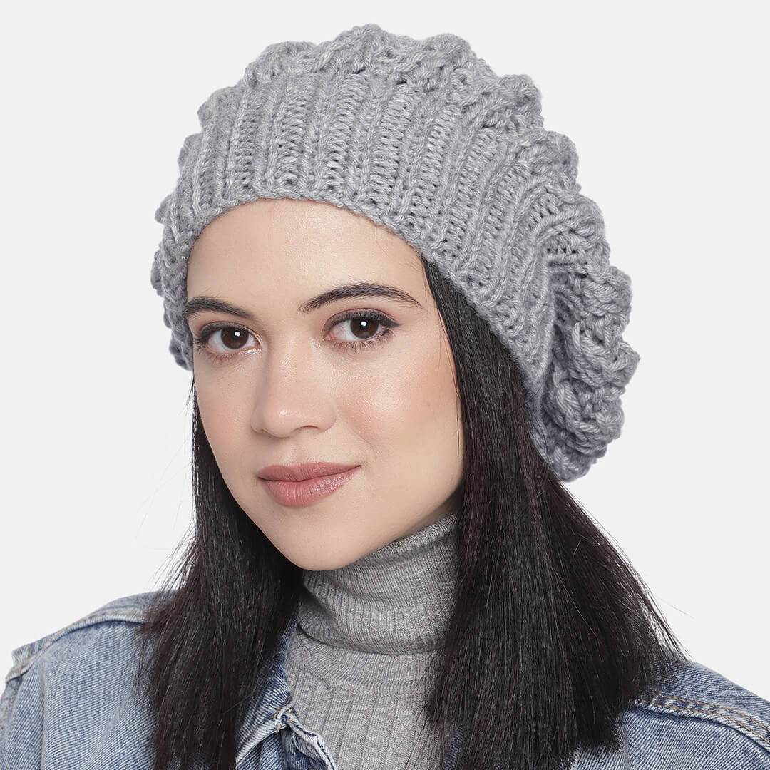 Grey Self-Design Beanie - 2743