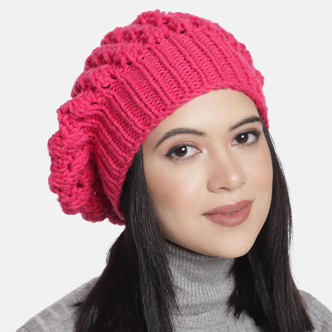 Fuchsia Pink Self-Design Beanie - 845