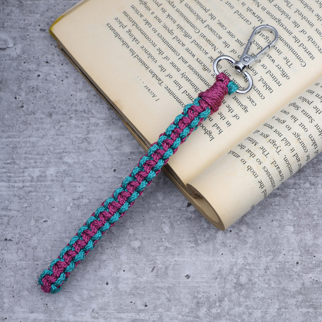 Macrame Wrist Wrap Keychain with Lobster Clasp-Magenta/Green