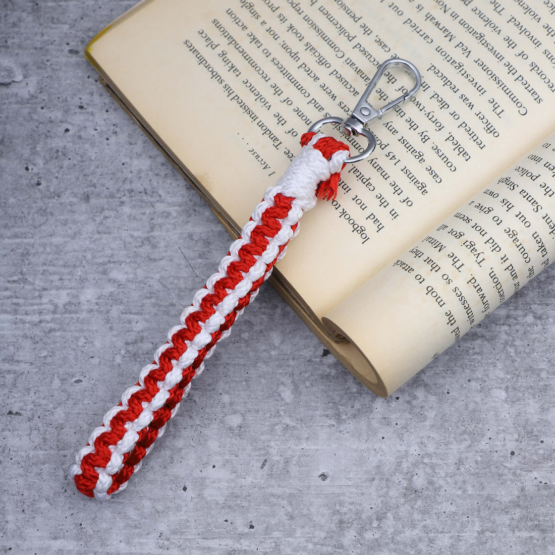 Macrame Wrist Wrap Keychain with Lobster Clasp-Red/White