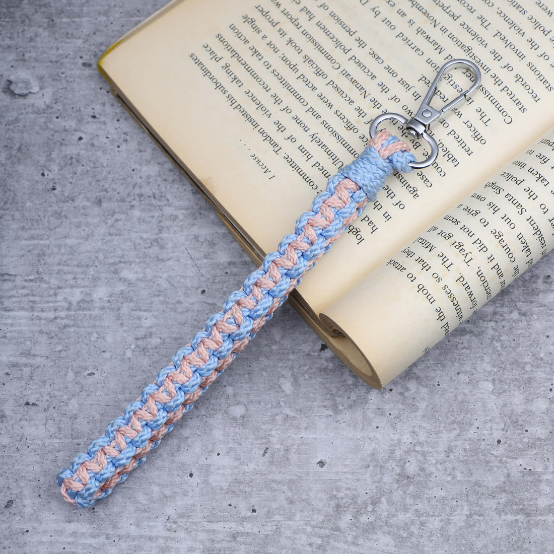 Macrame Wrist Wrap Keychain with Lobster Clasp-Pink/Blue