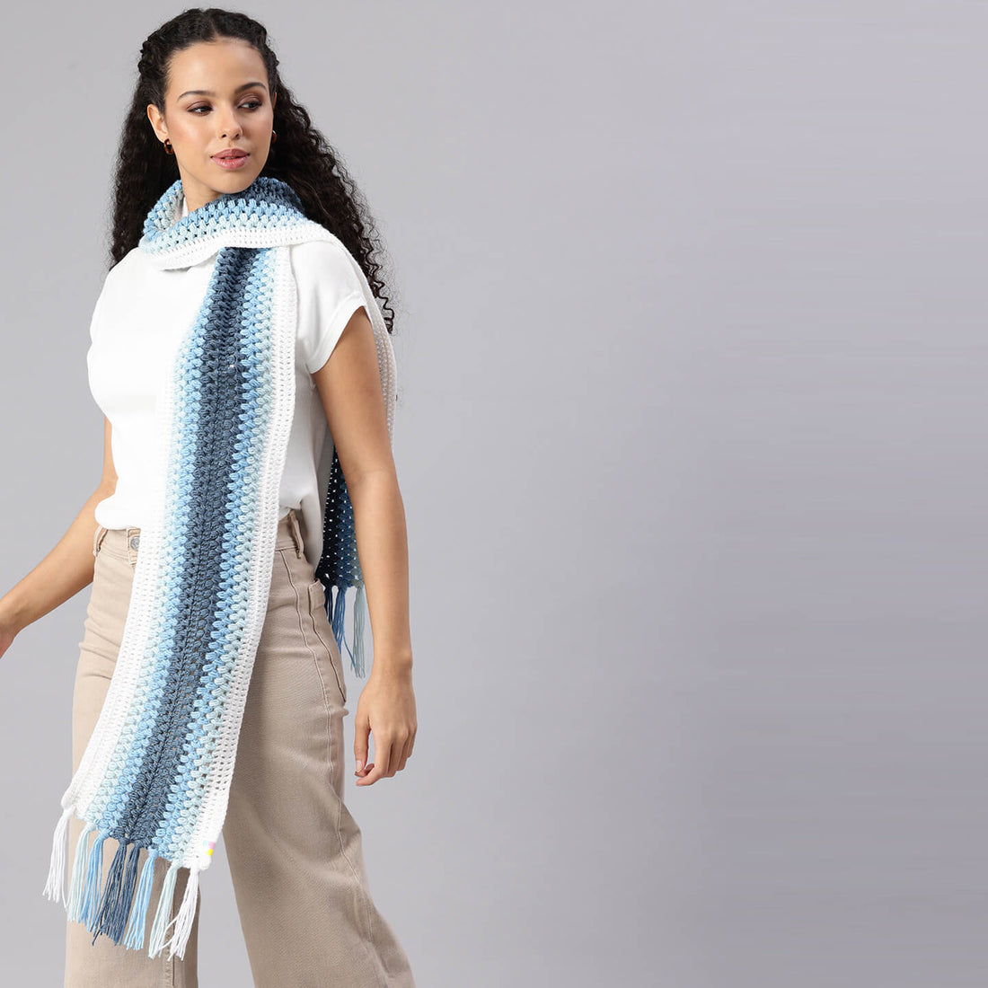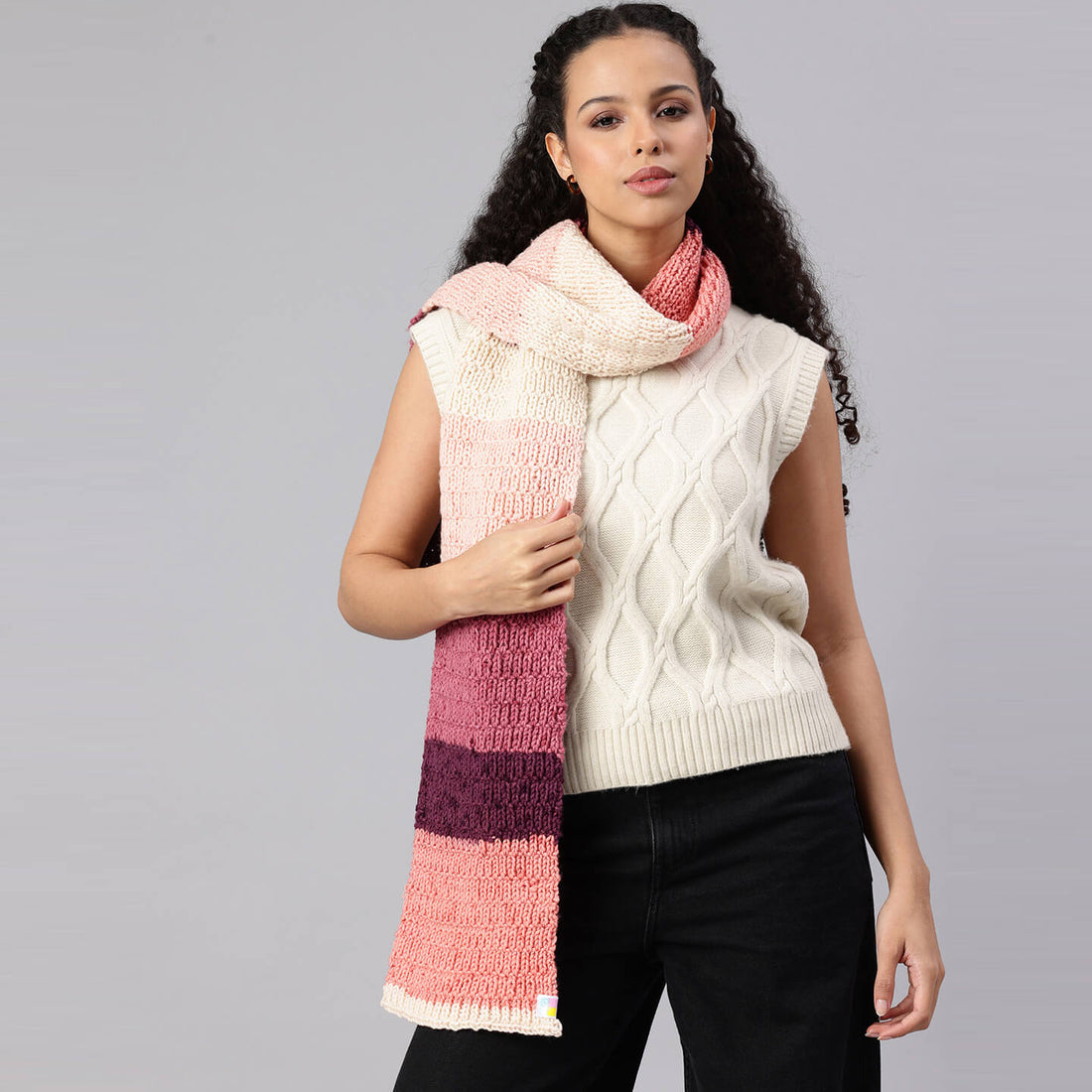 Handcrafted multicolor knitted scarf designed for warmth, comfort, and stylish winter looks. 100% Premium Acrylic...
