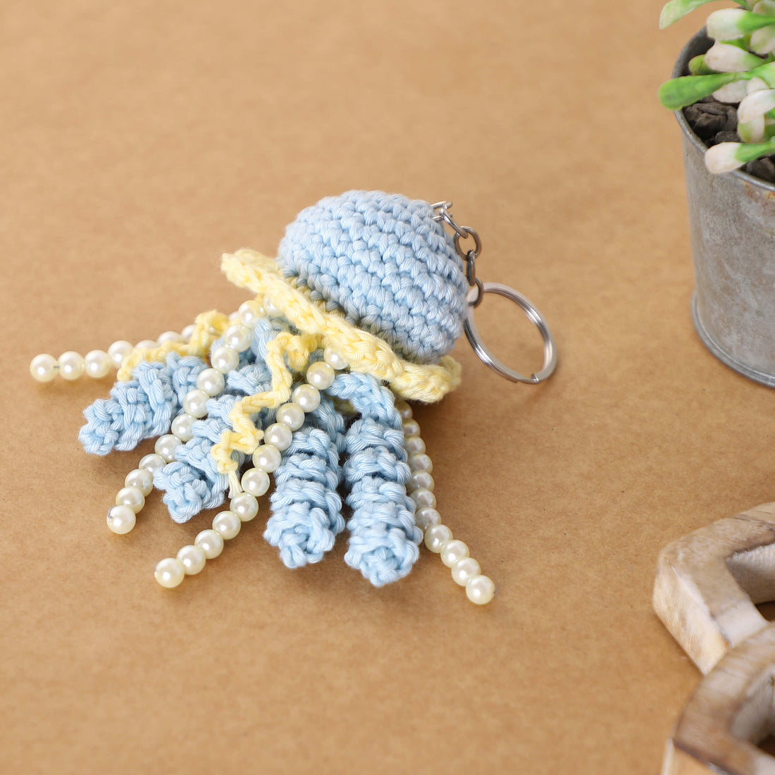 Handmade Crochet Jelly Fish Keychain-Baby Blue