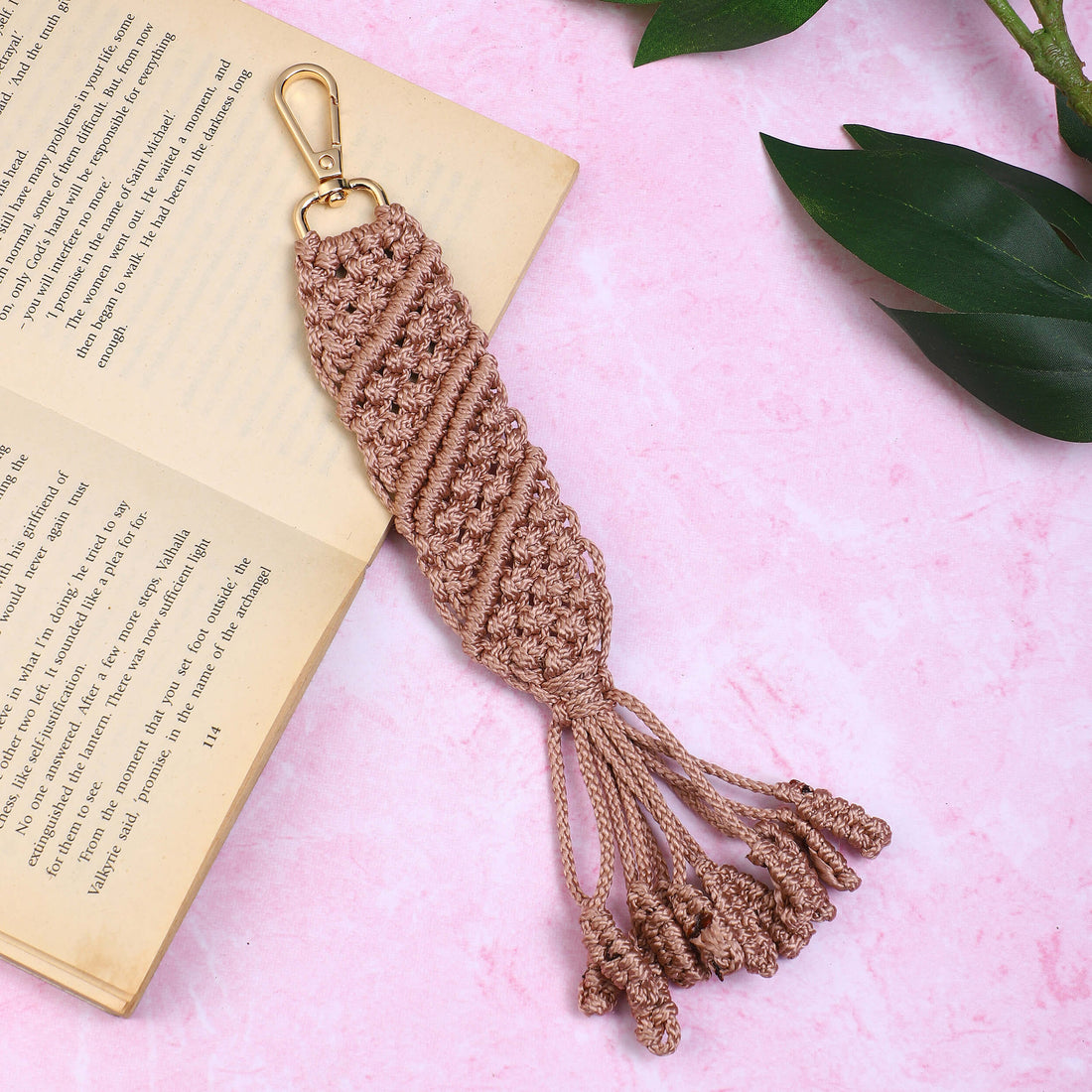 Macrame Long Bag Charms with Lobster Clasp - Brown