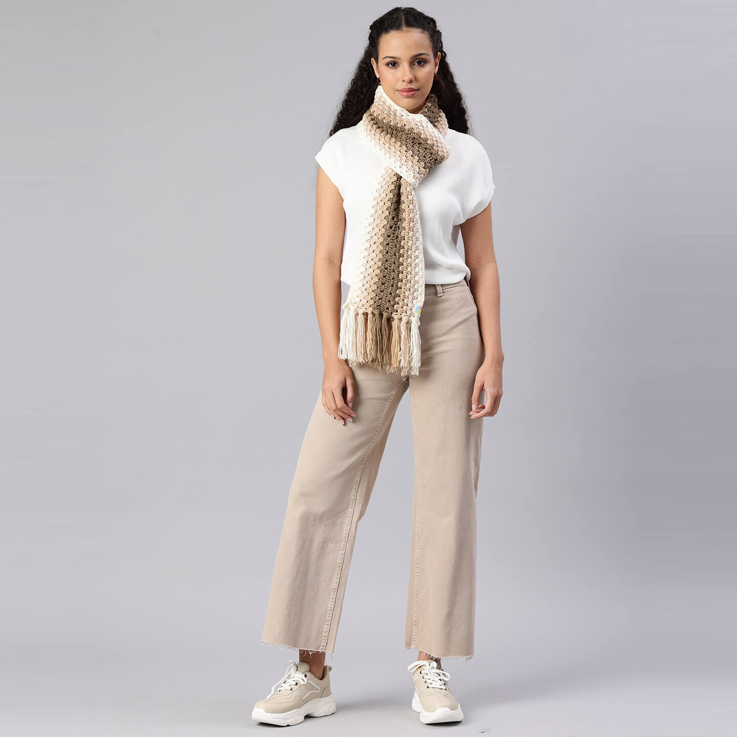 Brown Handmade Wave Pattern Crochet Scarf - 10494