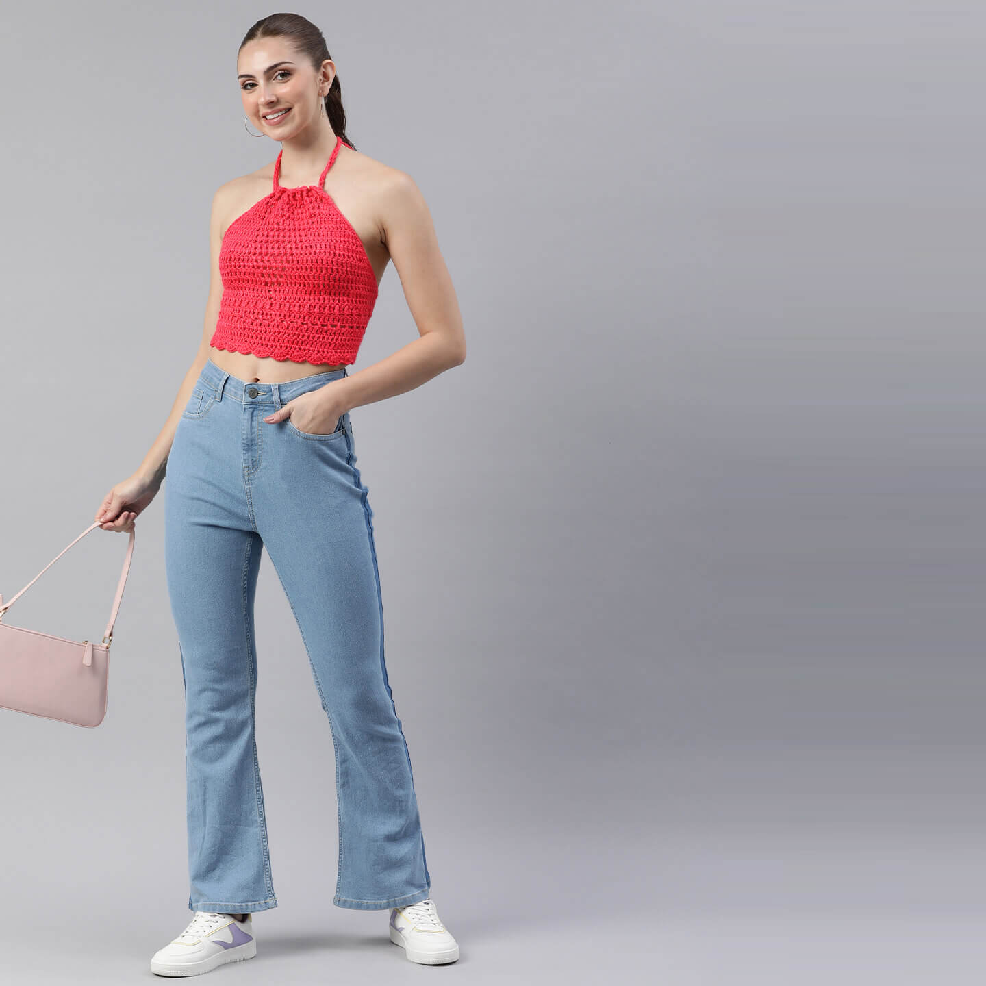 Crochet Bralette Tie Back Top - Fuchsia 3265