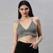 Cotton Bralette Tie Back Top - Grey 3109