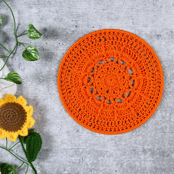 Crochet Mandala Wall Art - Boho Decor - 20 cm - Orange