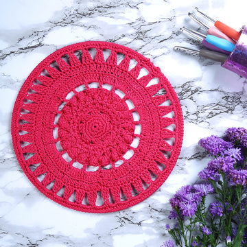 Crochet Mandala Wall Art - Boho Decor - 25 cm - Pink