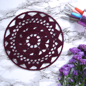 Crochet Mandala Wall Art - Boho Decor - 25 cm - Wine
