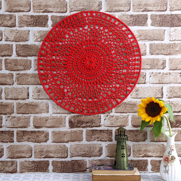 Crochet Mandala Wall Art - Boho Decor - 45 cm - Red