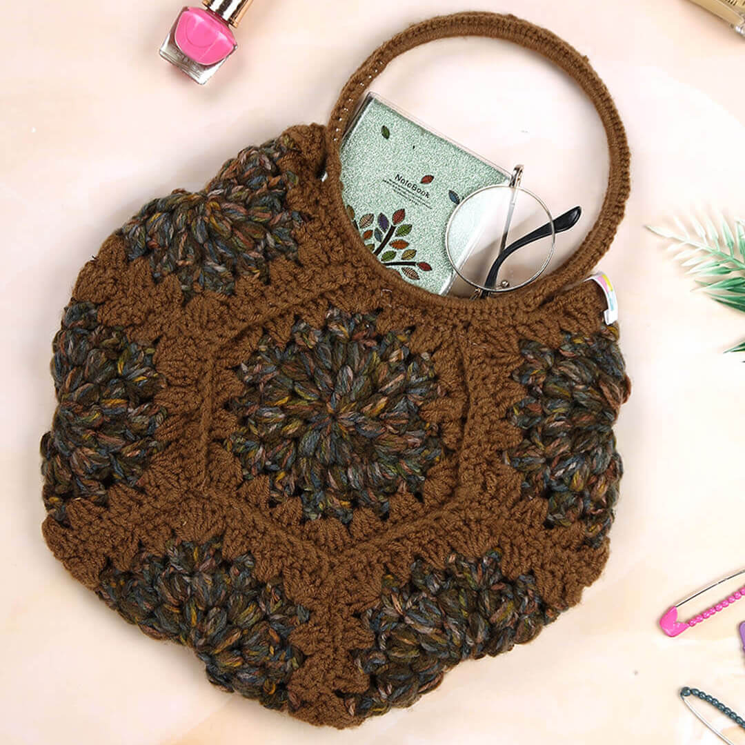A lovely handcrafted crochet bag made with vibrant colored cotton yarn - perfect for casual outings to hold all your daily essentials.