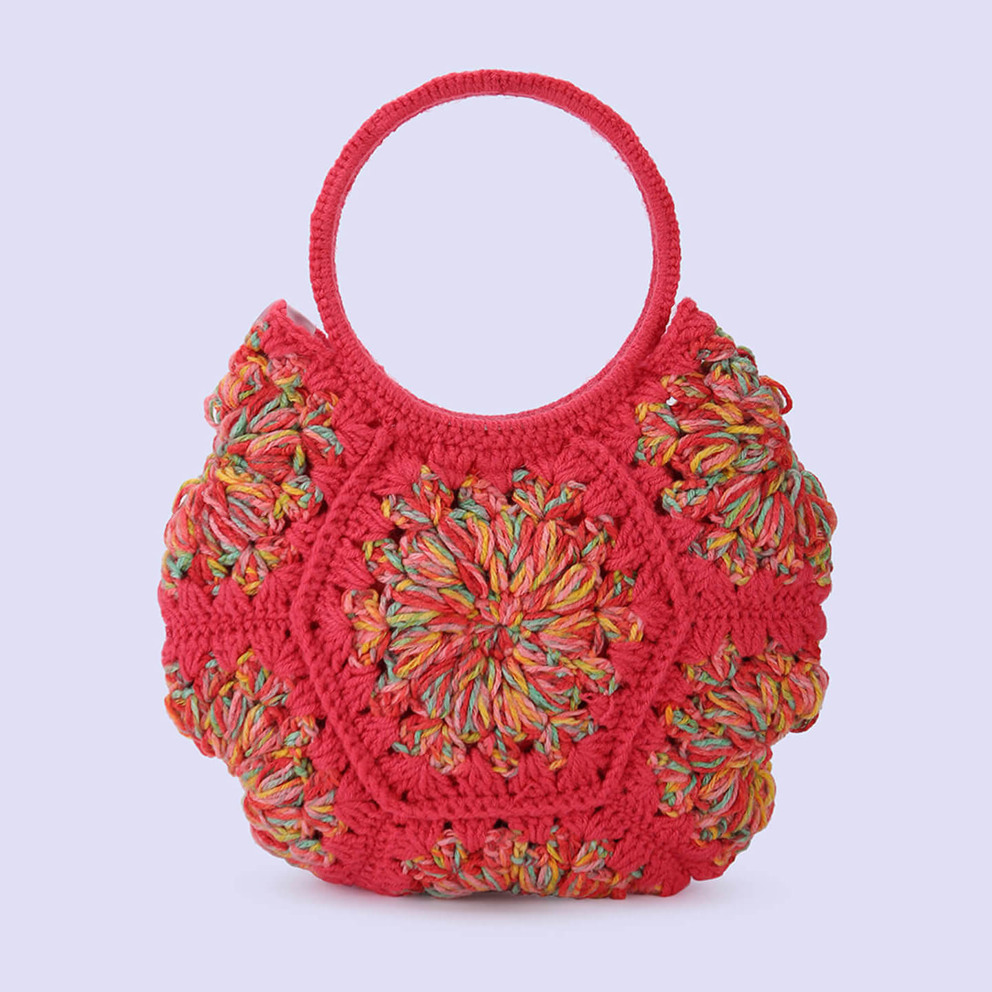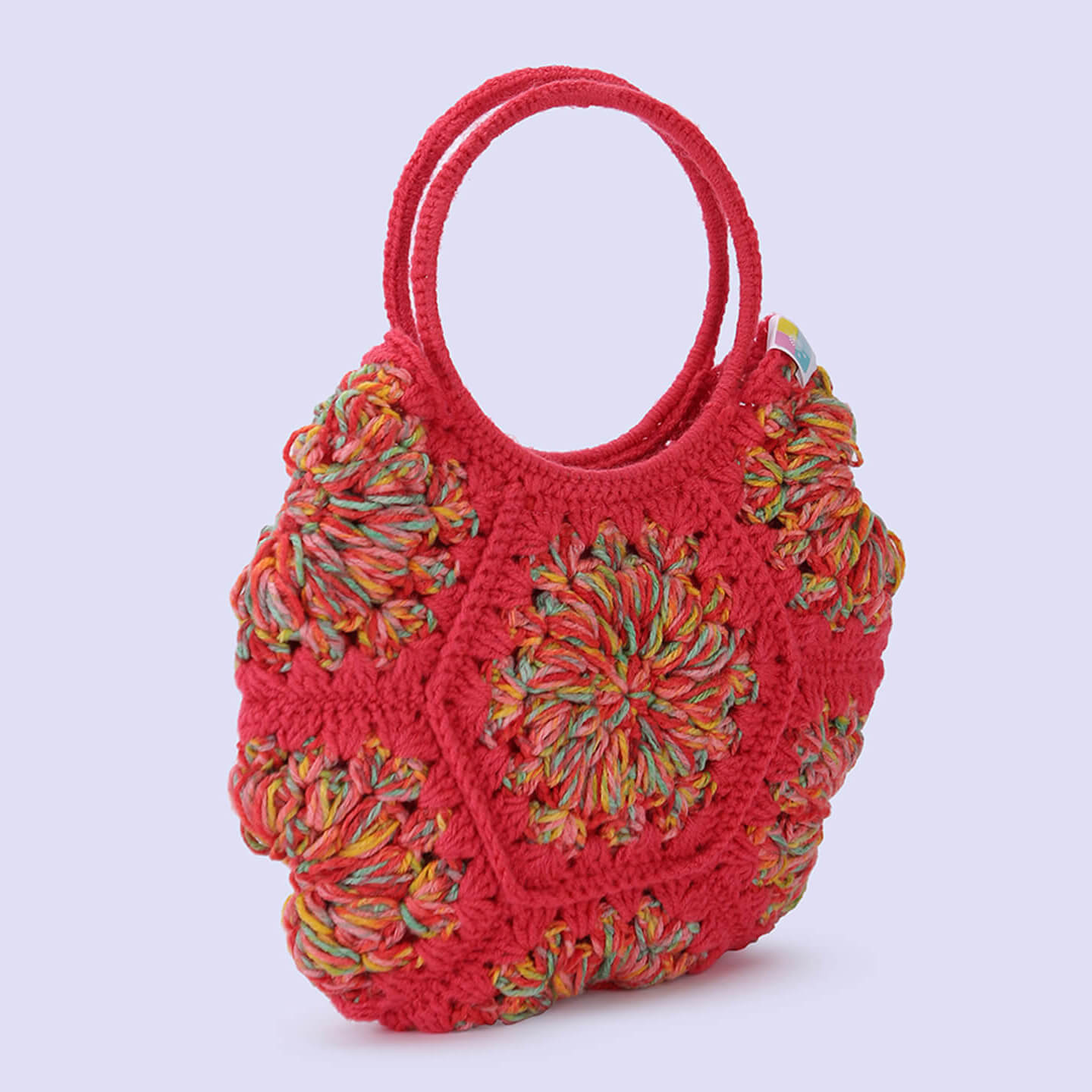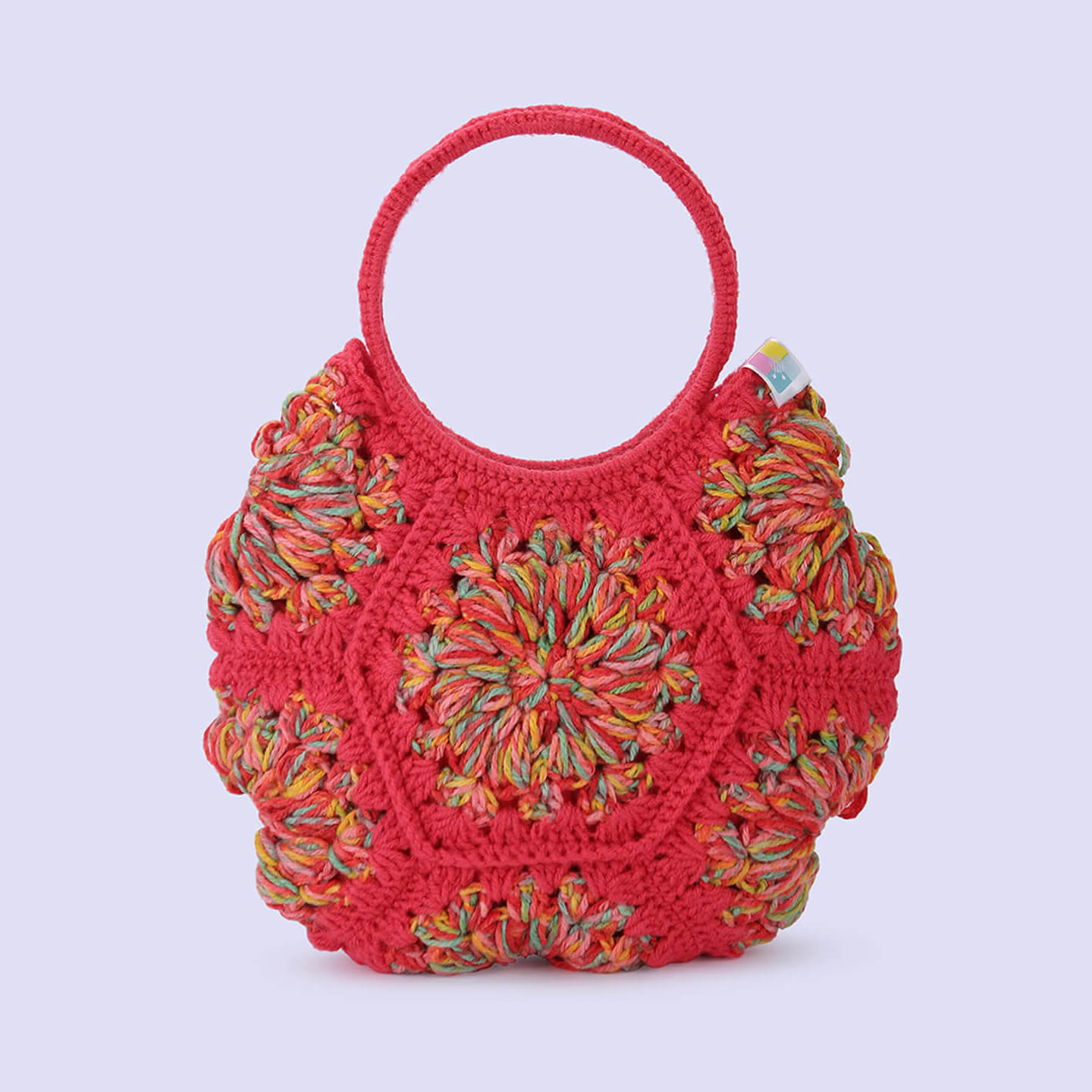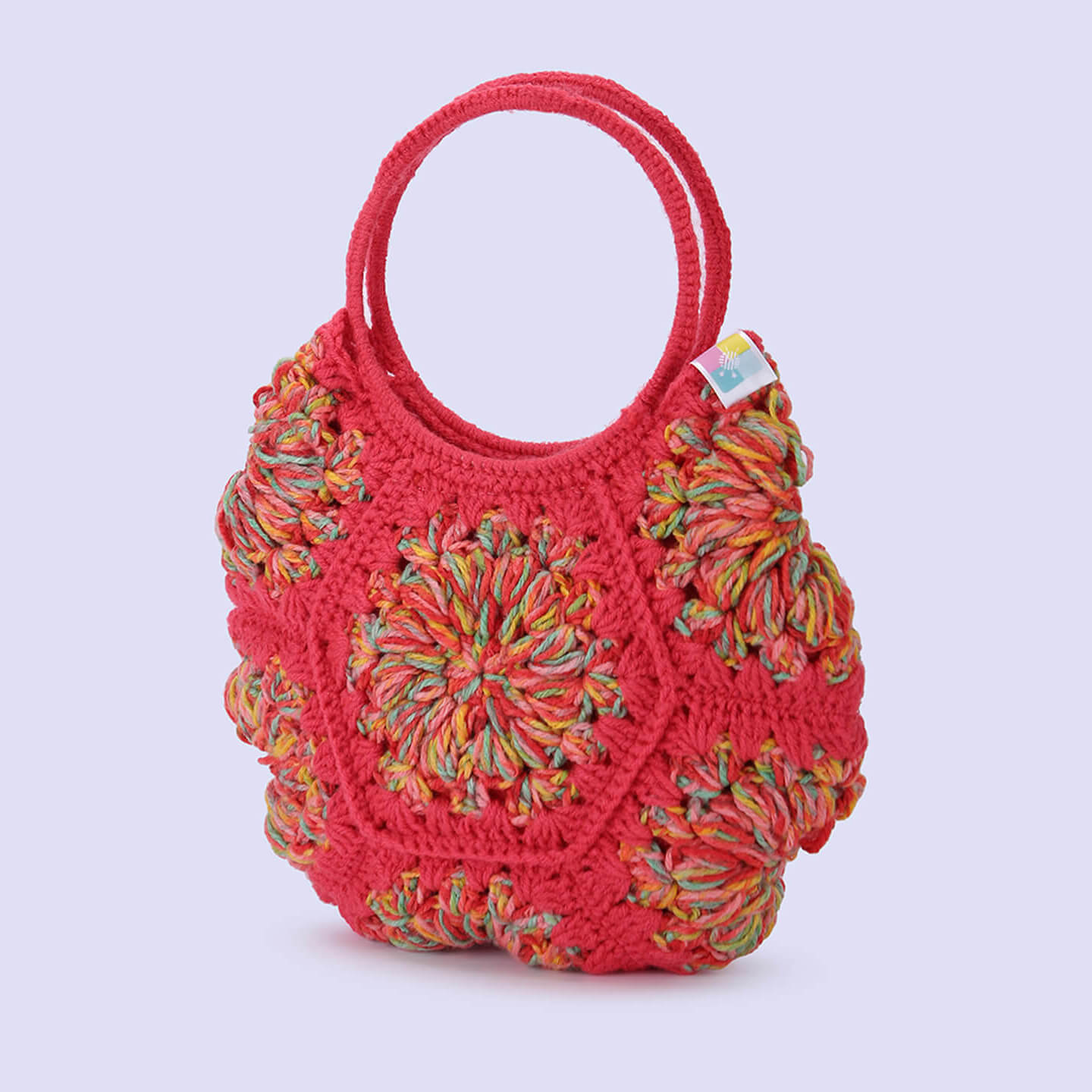 A lovely handcrafted crochet bag made with vibrant colored cotton yarn - perfect for casual outings to hold all your daily essentials.