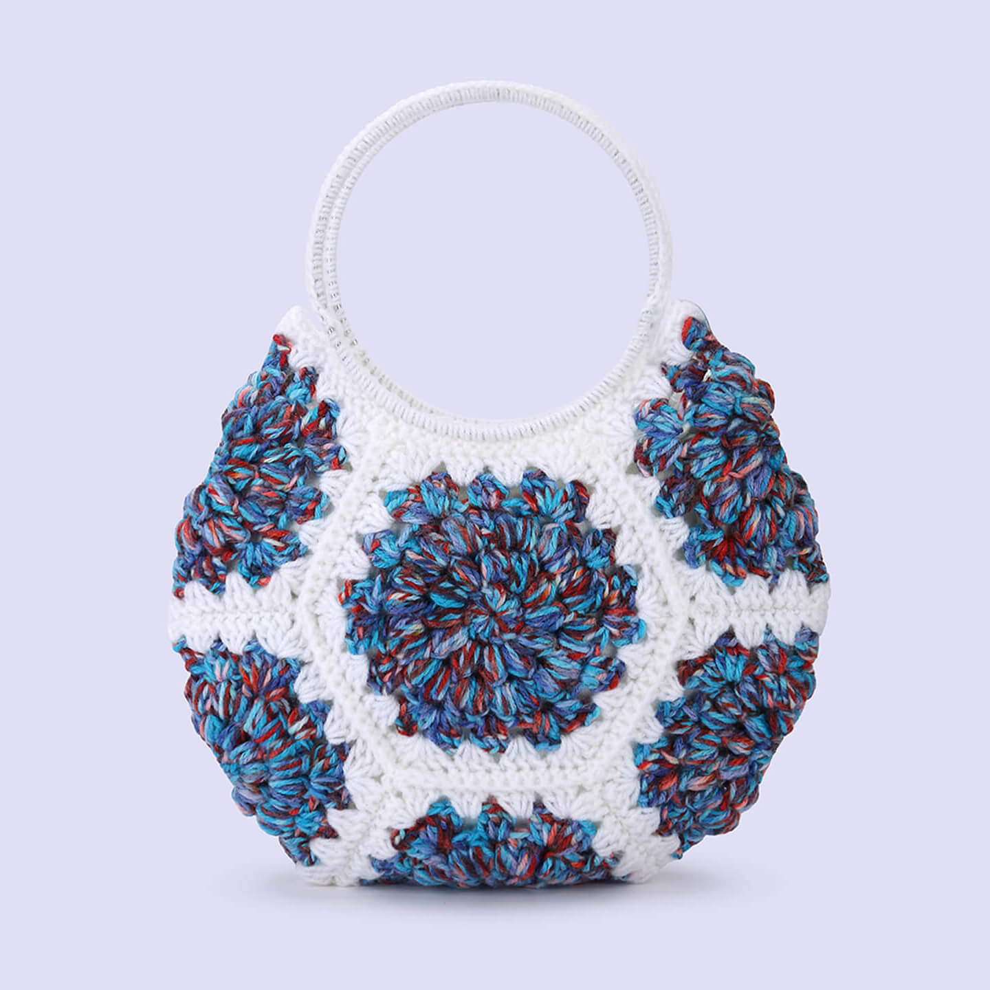 A lovely handcrafted crochet bag made with vibrant colored cotton yarn - perfect for casual outings to hold all your daily essentials.