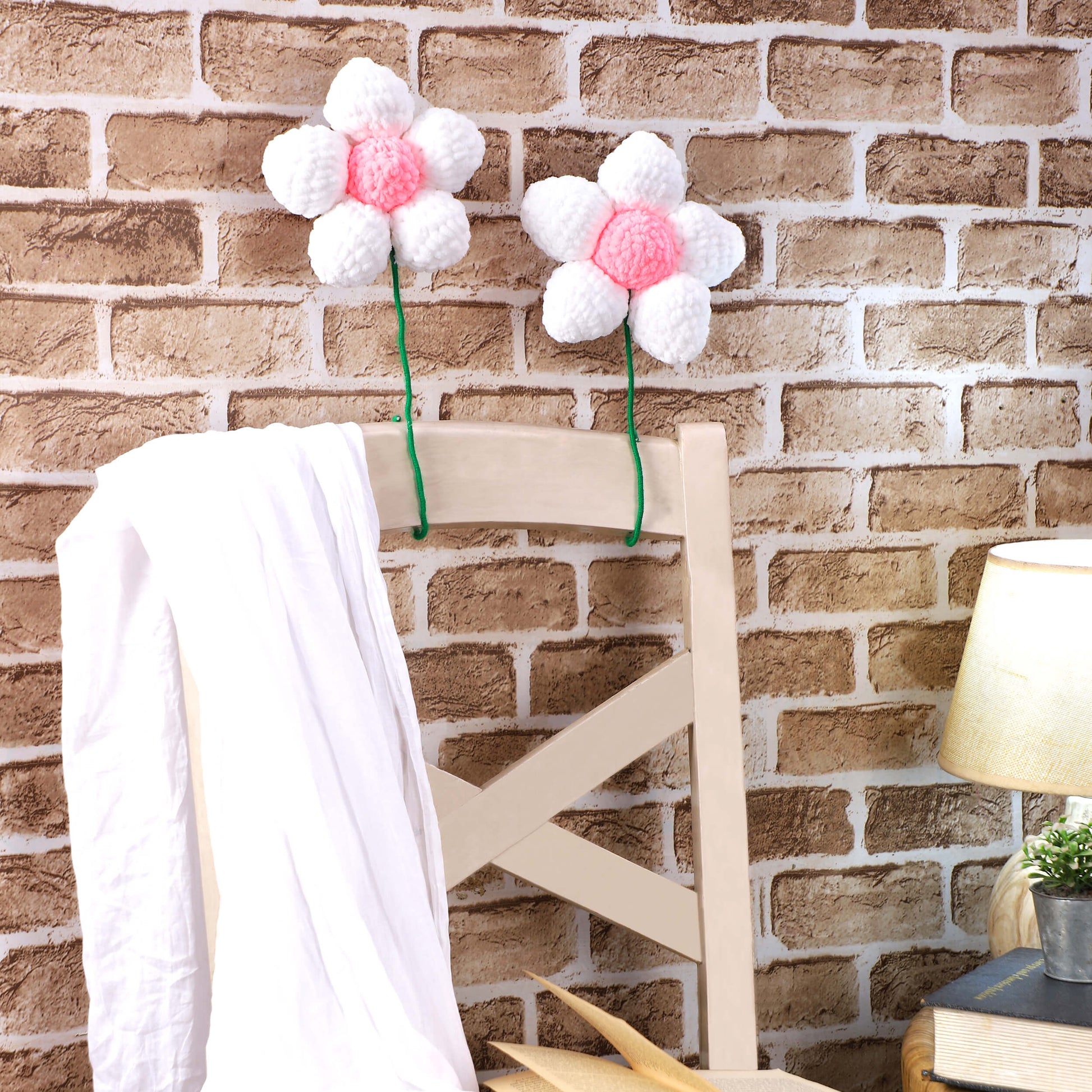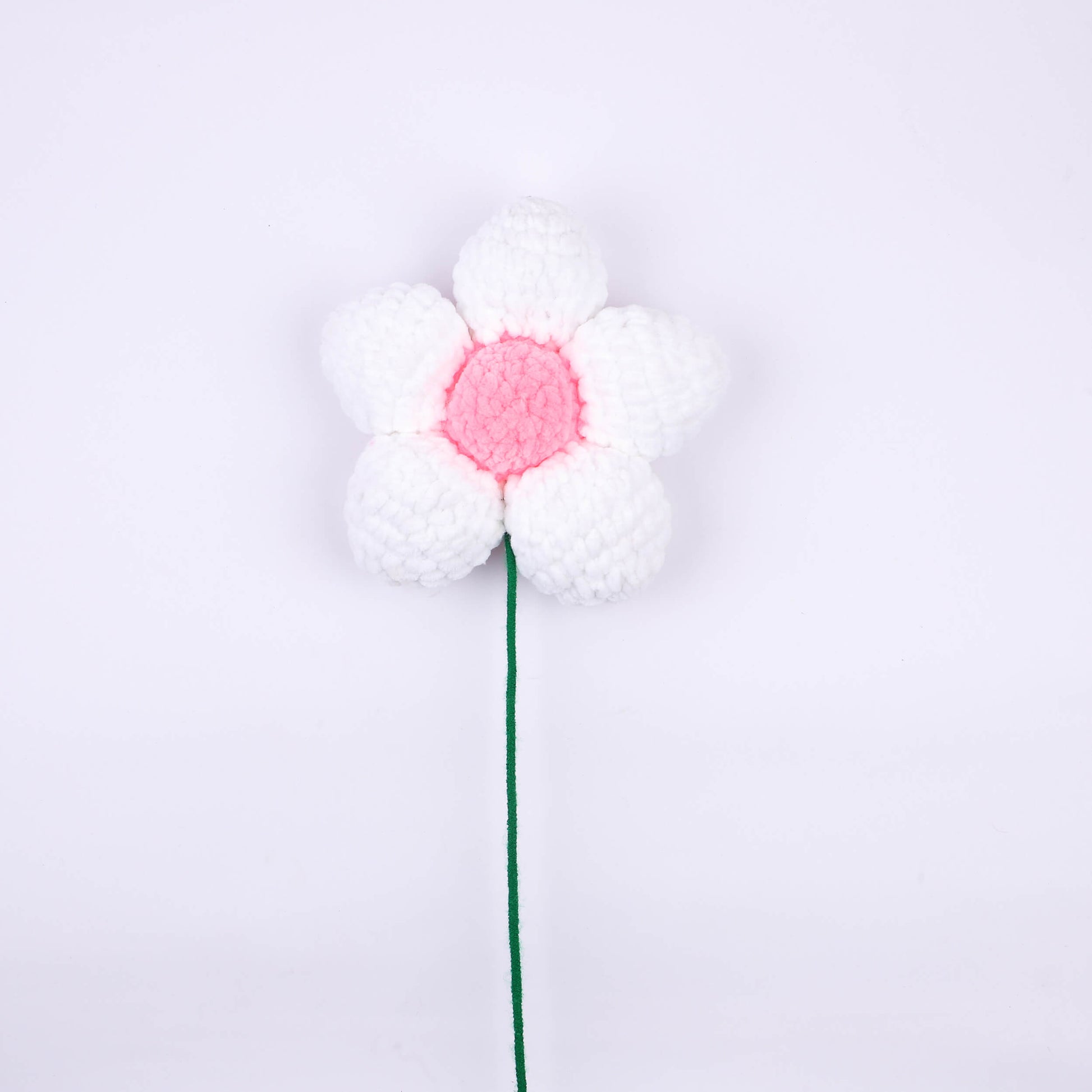 Handmade Amigurumi Flower with Bendable Stem - White/Pink