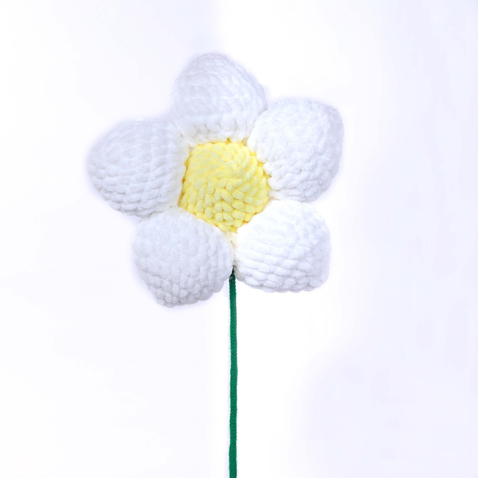 Handmade Amigurumi Flower with Bendable Stem - White/Yellow