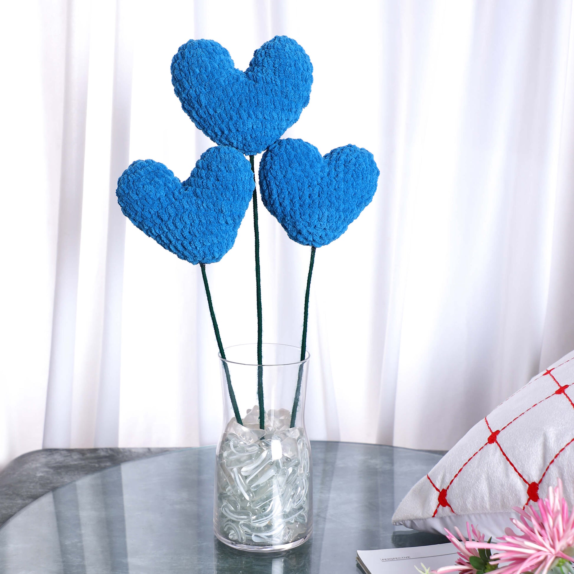 Handmade Amigurumi Heart on a Bendable Stick - Marine Blue