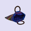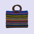 Handmade Cotton Handbag with Wood Handles - Multi - 10363