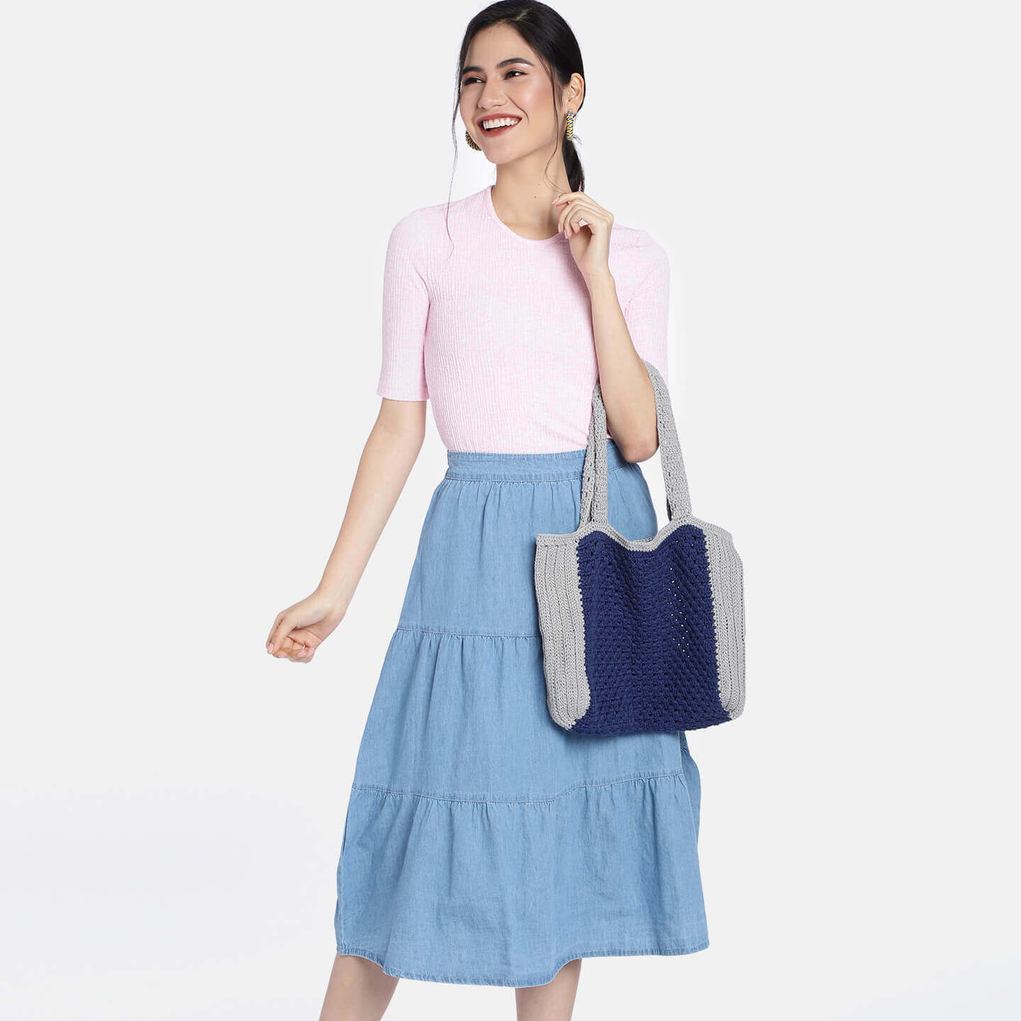 A lovely handcrafted crochet bag made with vibrant colored cotton yarn - perfect for casual outings to hold all your daily essentials.
