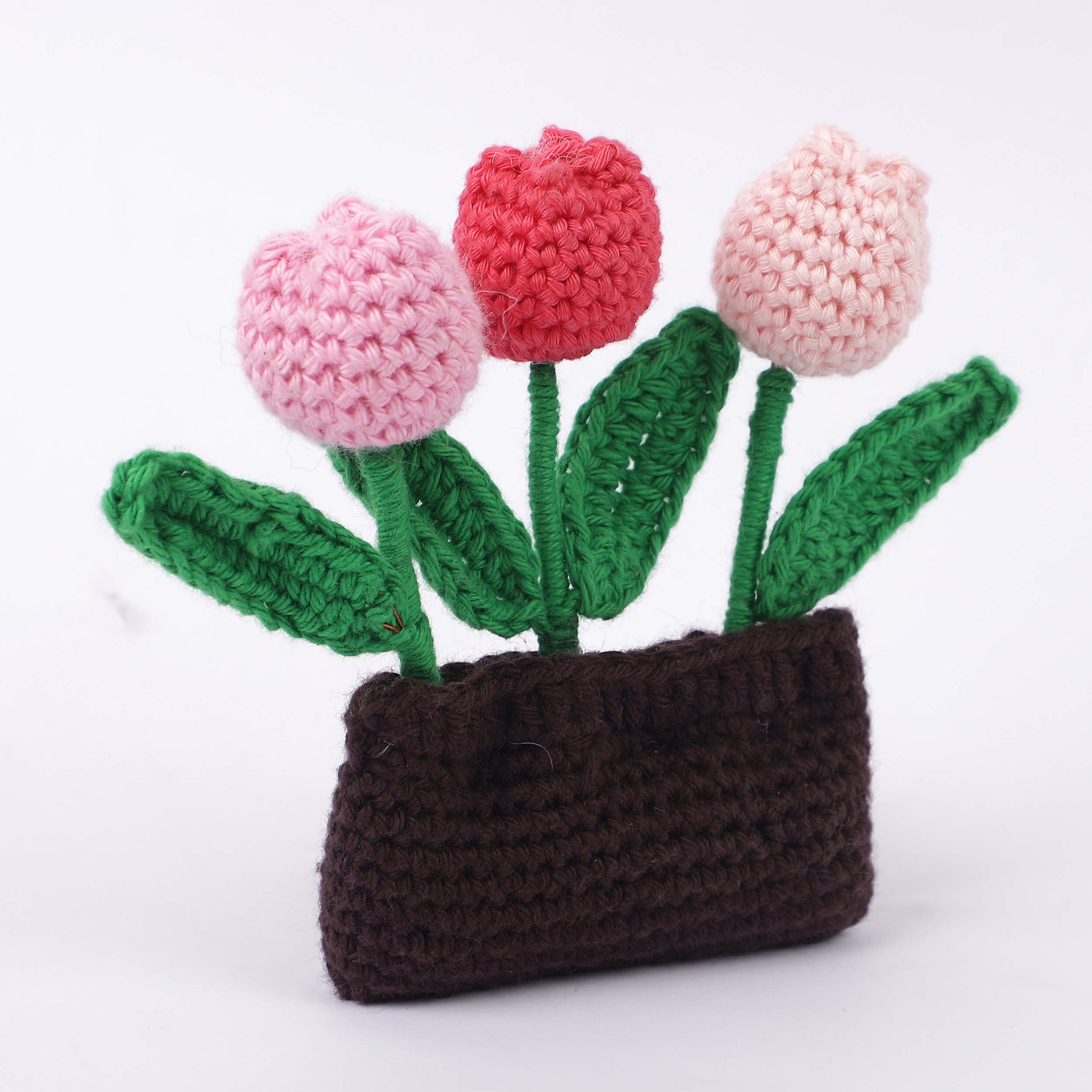 Handmade Crochet Fridge Magnets - 3 Tulips