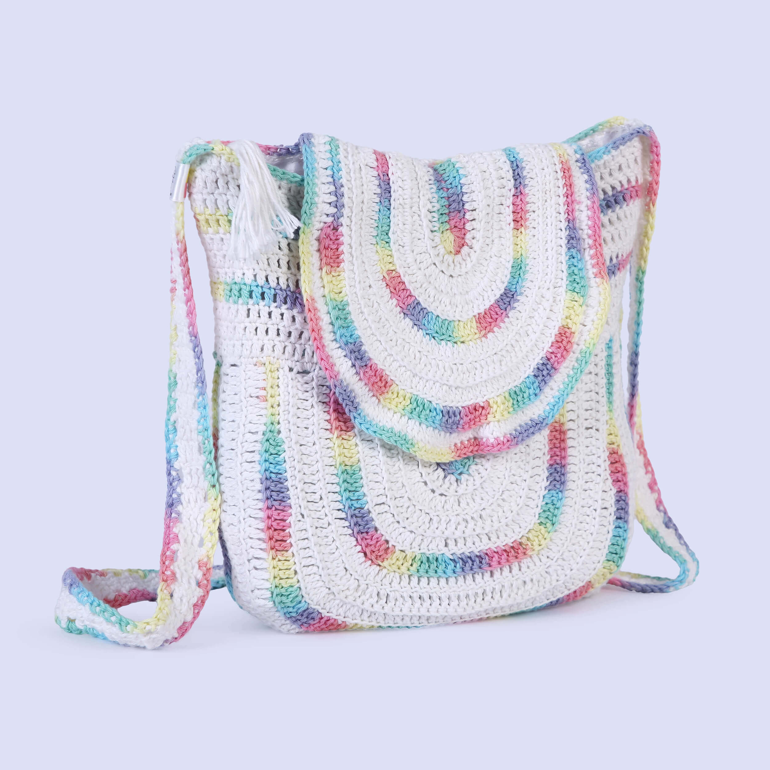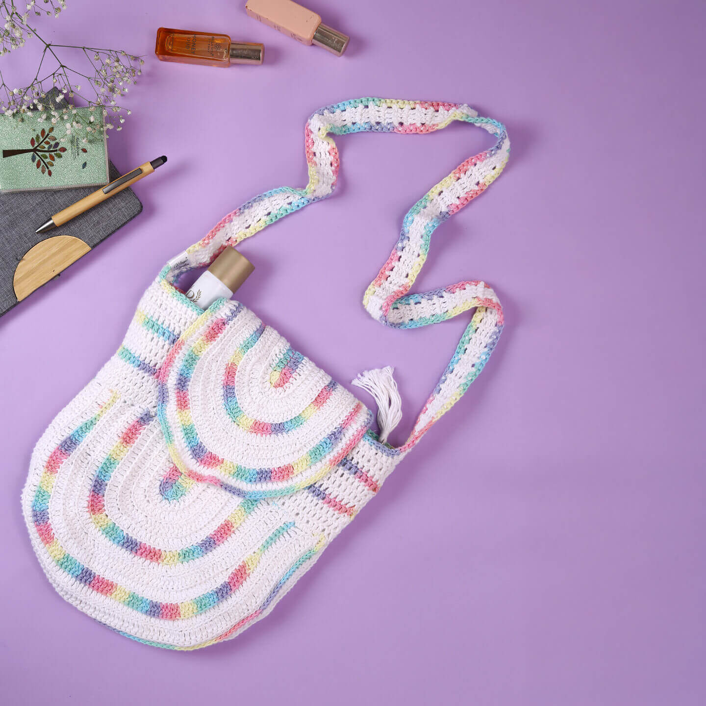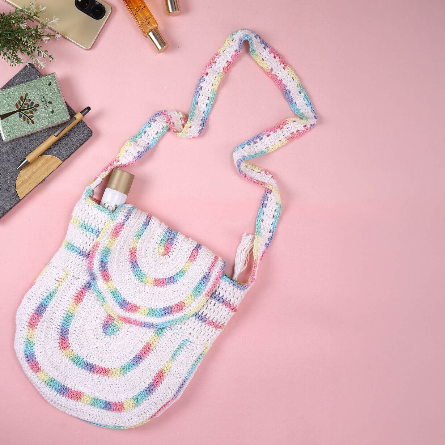A lovely handcrafted crochet bag made with vibrant colored cotton yarn - perfect for casual outings to hold all your daily essentials.