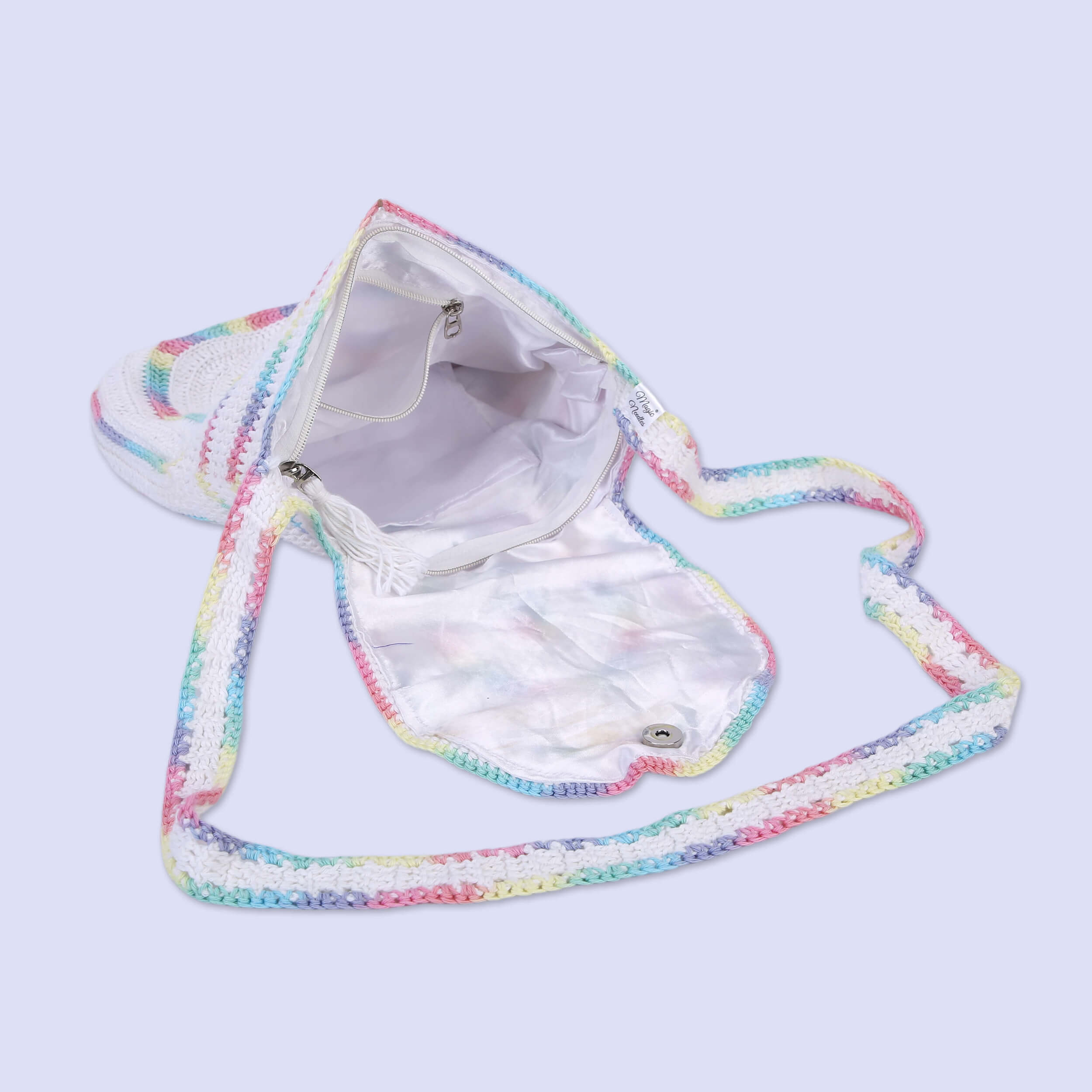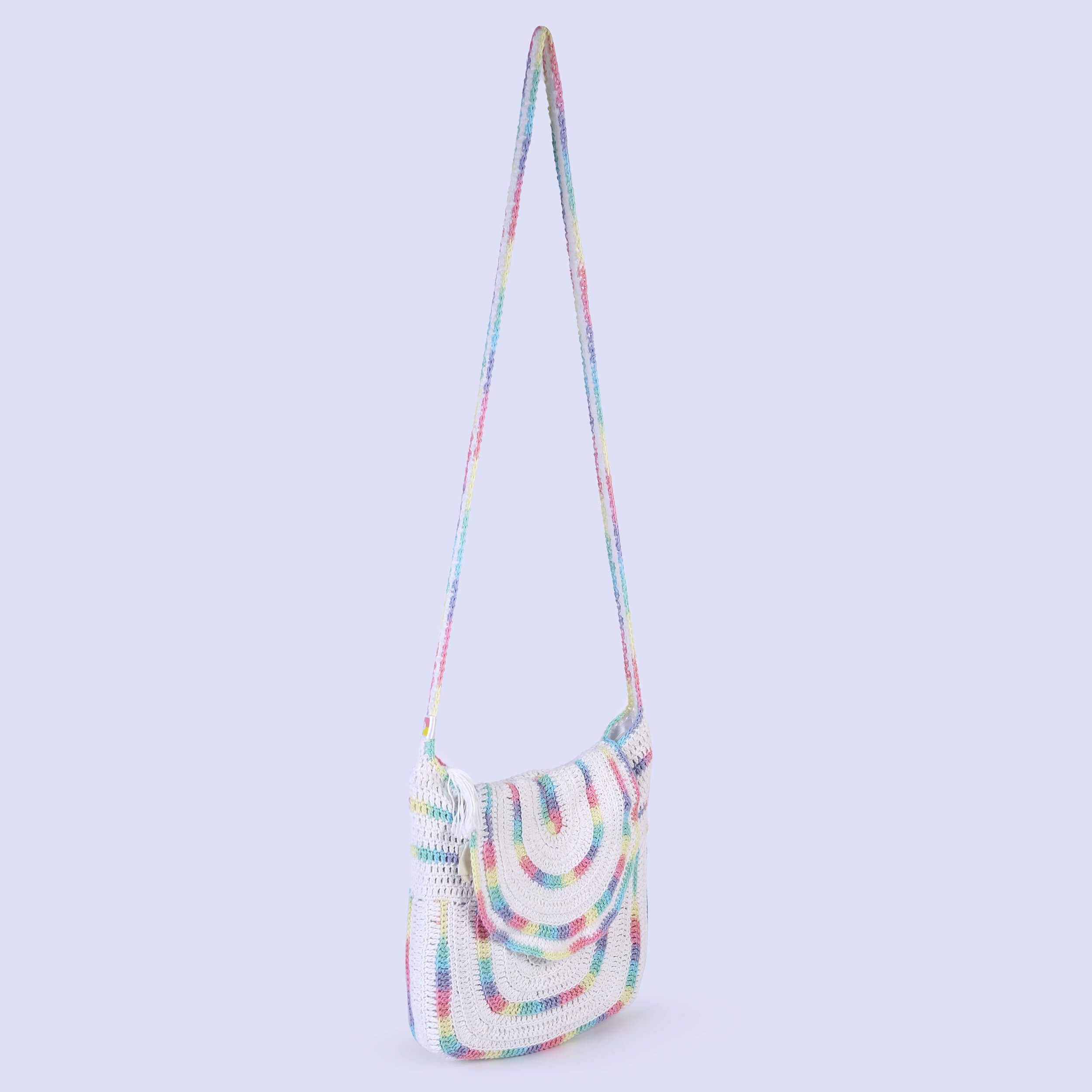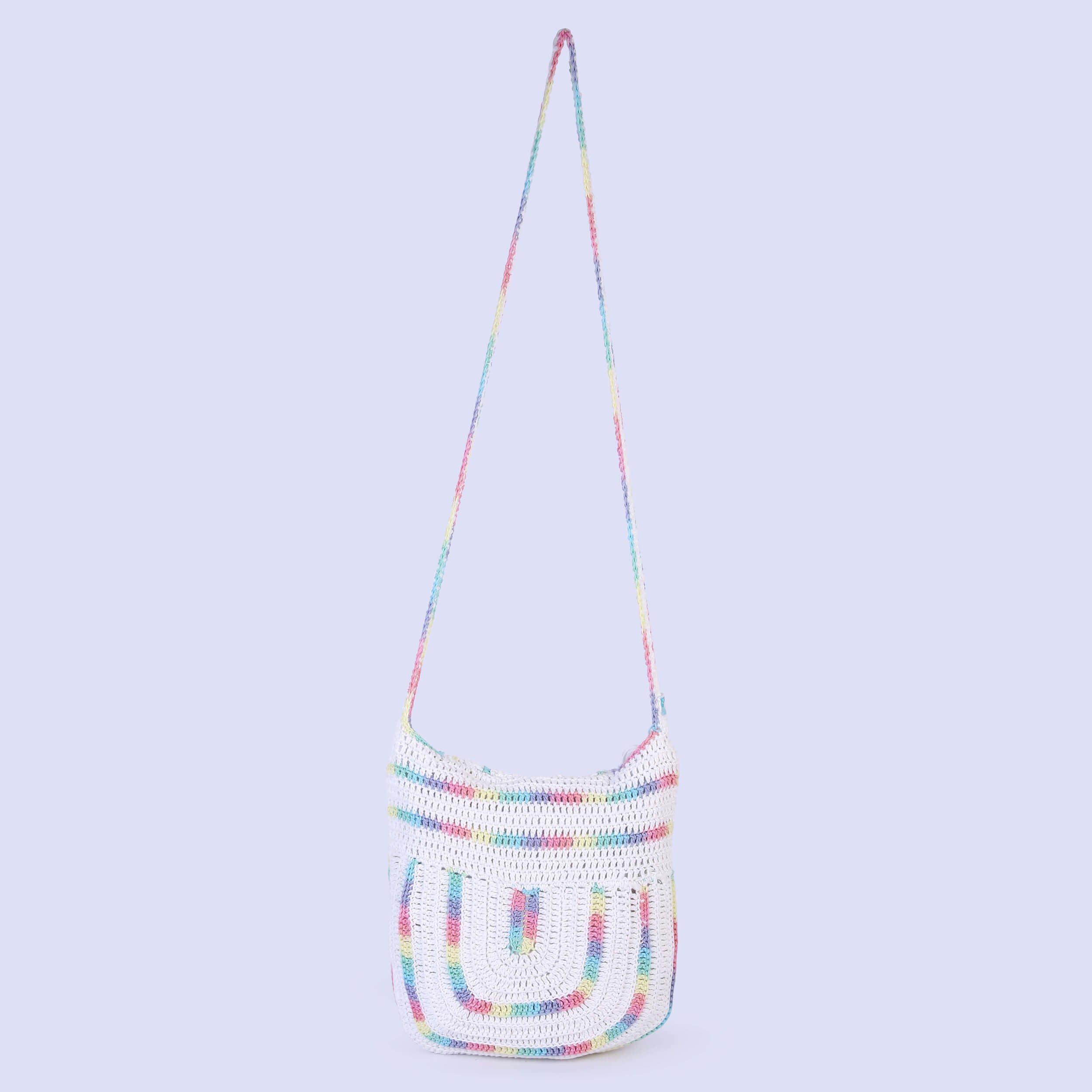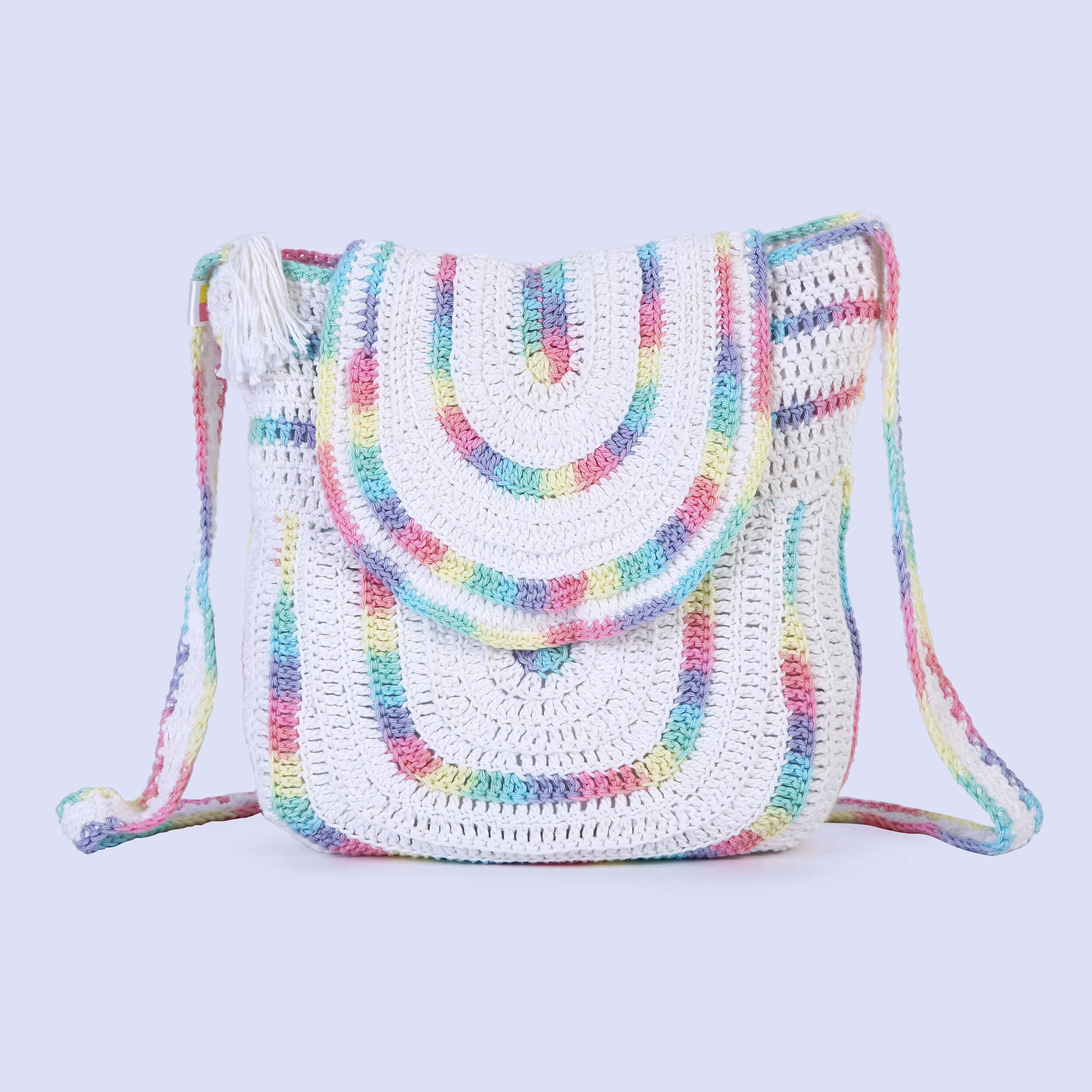 A lovely handcrafted crochet bag made with vibrant colored cotton yarn - perfect for casual outings to hold all your daily essentials.
