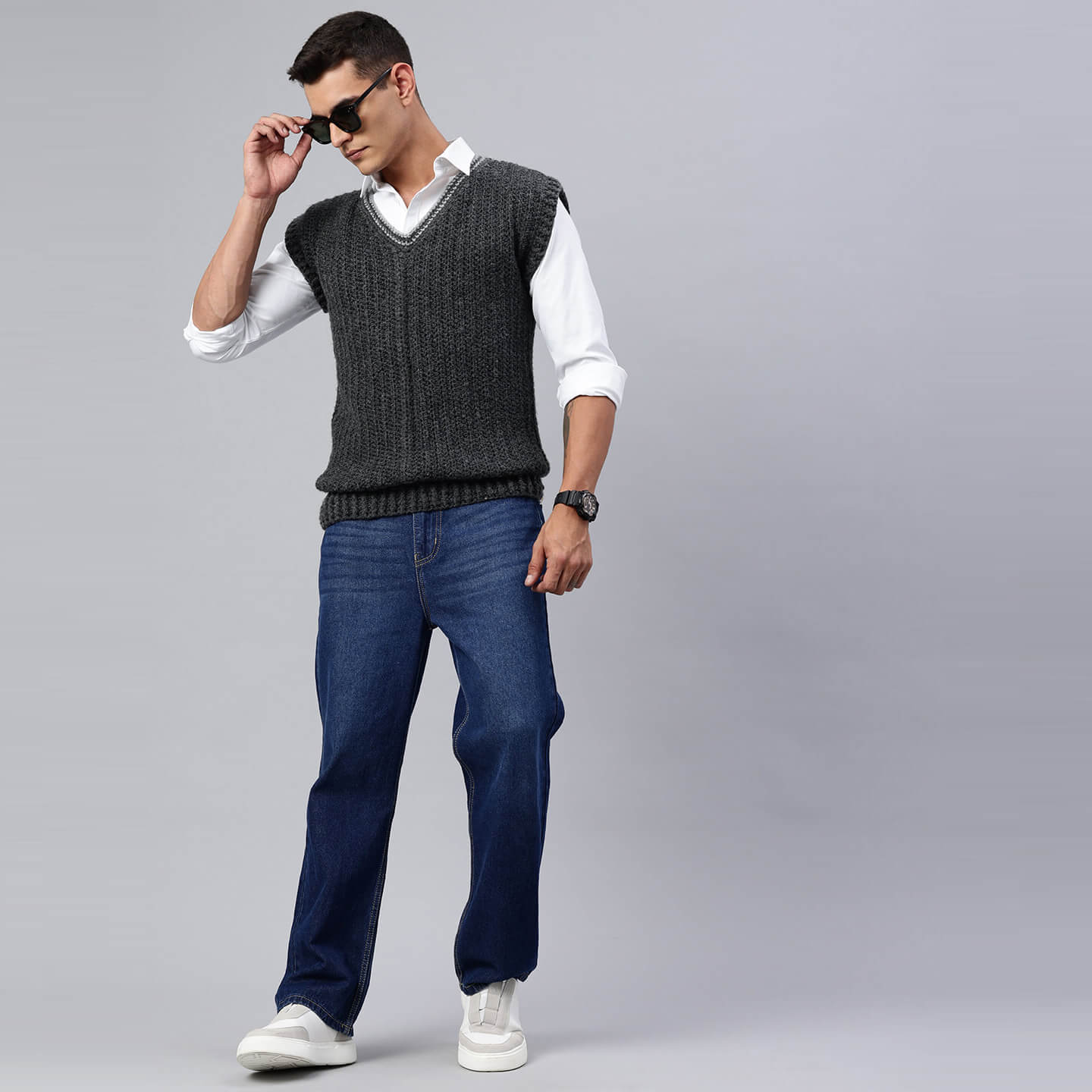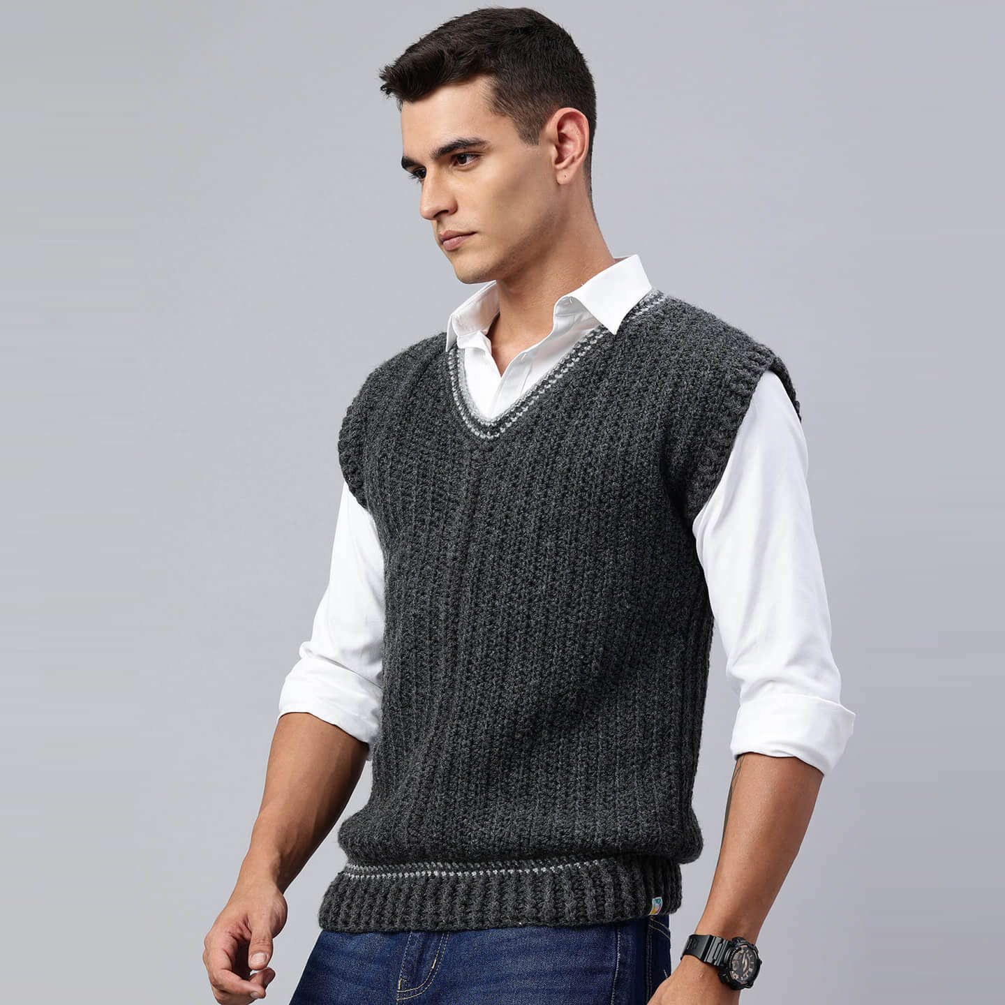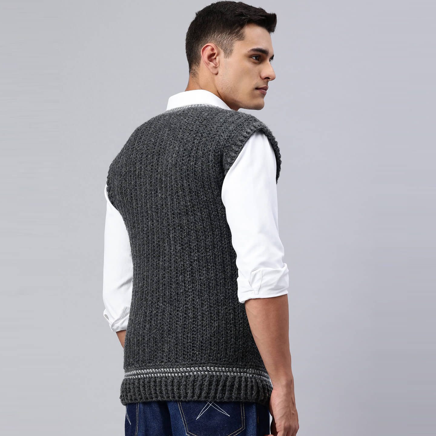 Handmade Sleeveless Mens Pullover - Grey - 10052