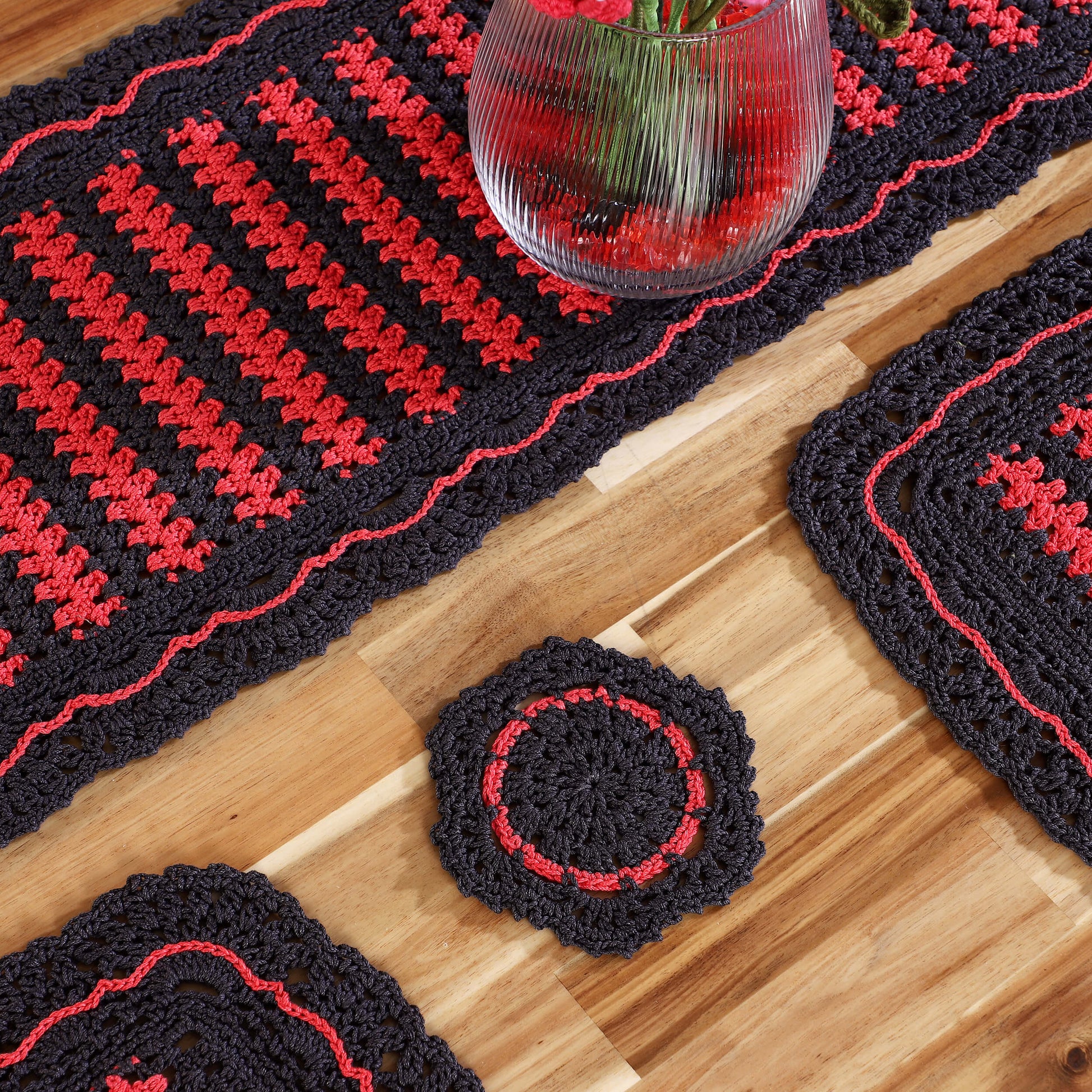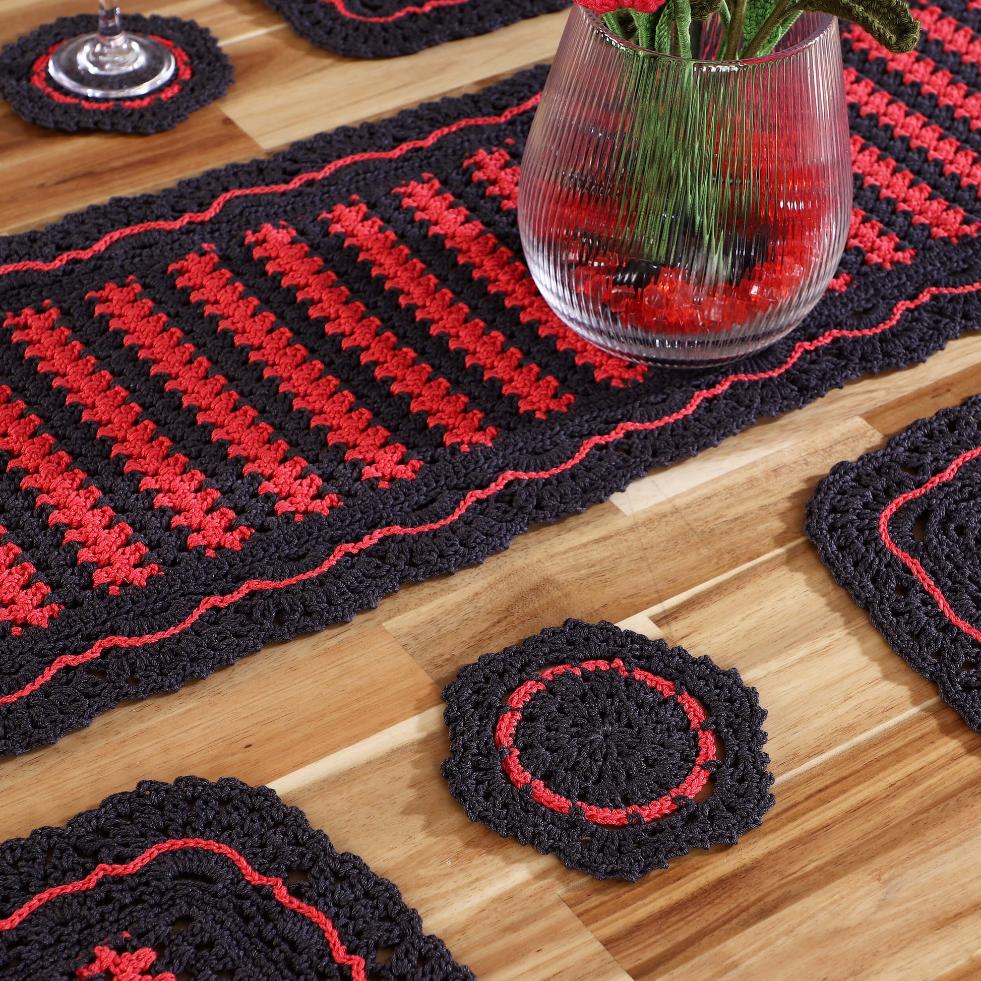 Elevate your dining space with our 100% hand-knitted table runner, placemats, and coasters set — crafted in soft cotton blend yarn and timeless crochet patterns. Perfect for everyday elegance or special gatherings.