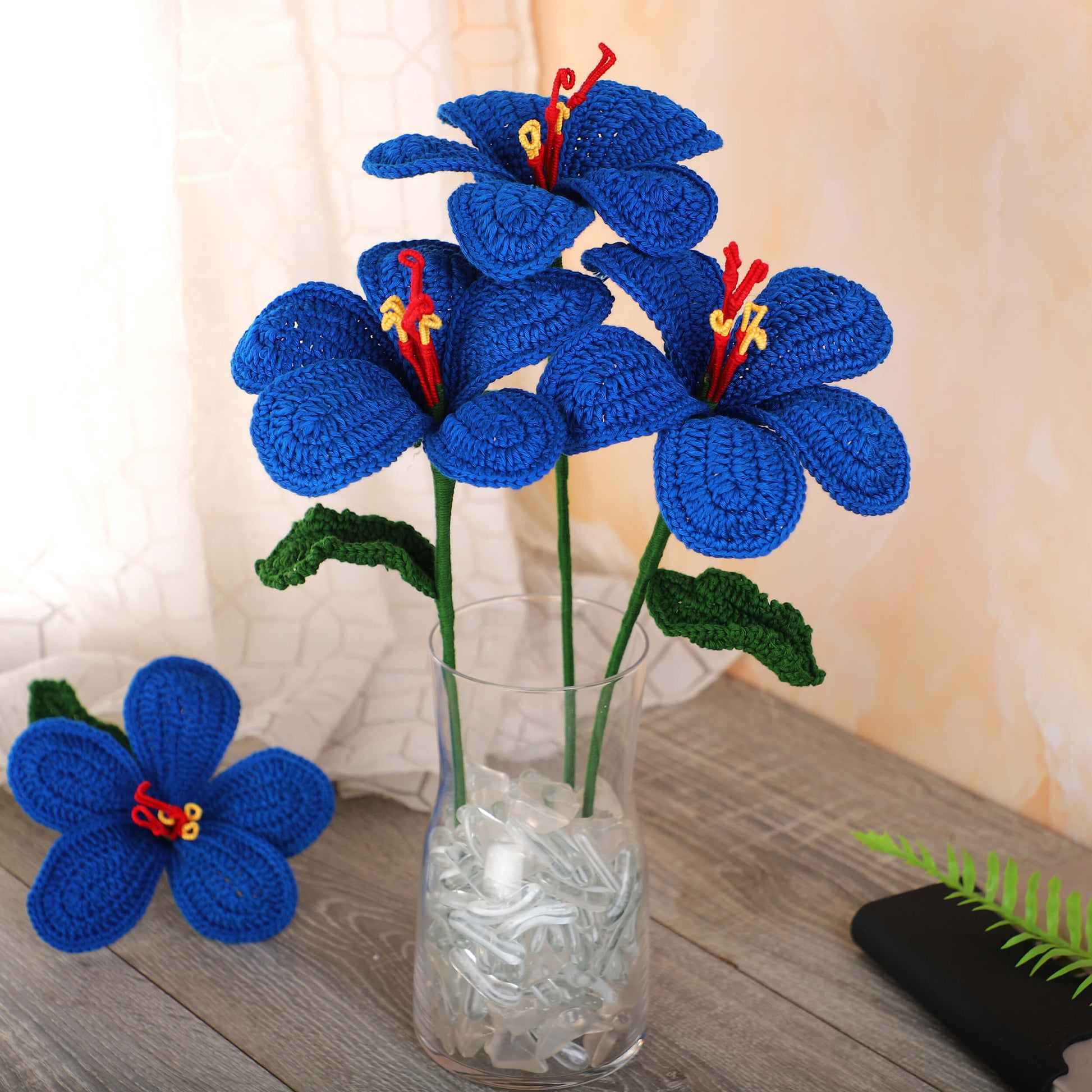 Add a touch of handcrafted charm to your home and creative projects with our Handcrafted Crochet Hibiscus Flower. Inspired by real blossoms, this timeless floral piece is crocheted with care and attention to detail creating a vivid, everlasting bloom to brighten spaces long after fresh flowers fade.