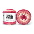 Hobby Store DK Anti-Pill Cake Yarn is wound into a cake that sits flat to show off the colors. There's a wide variety of color combinations on these self-striping yarns, from vibrant complementary colors to subtle gradient shades and some specks of colors here and there.