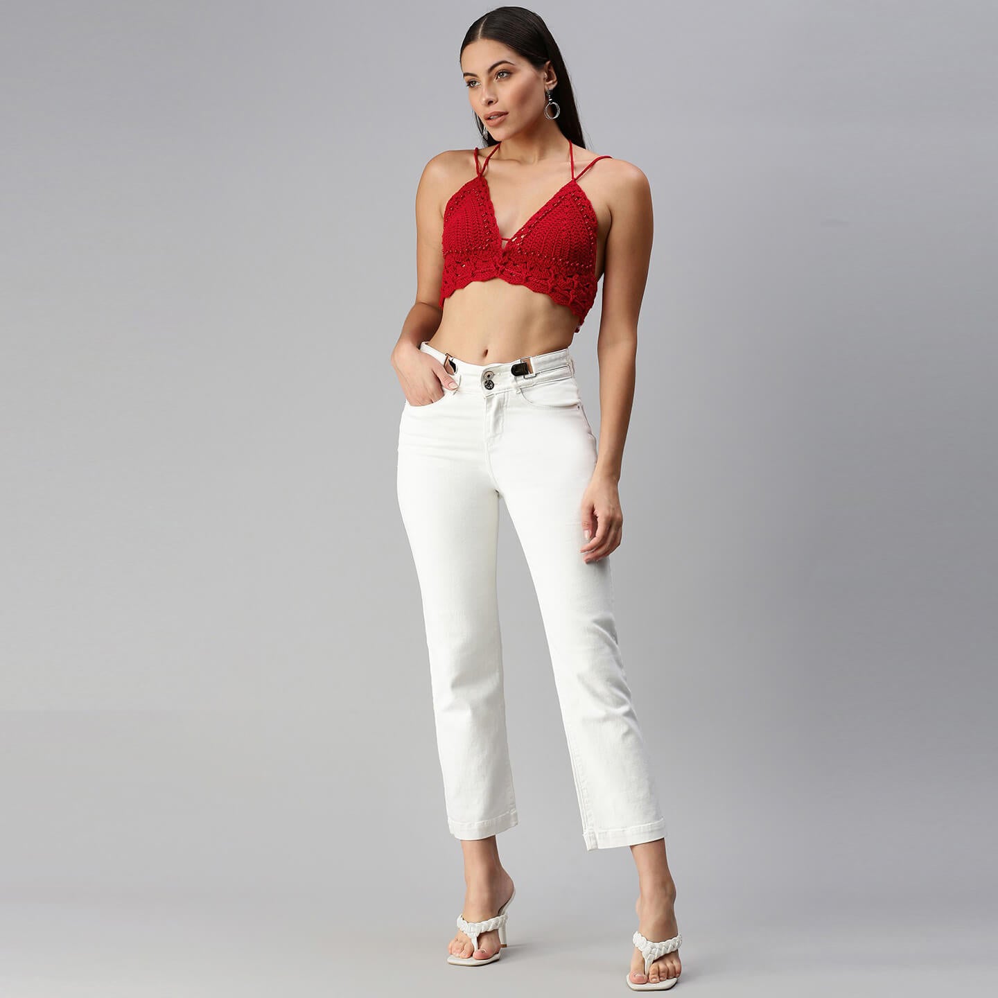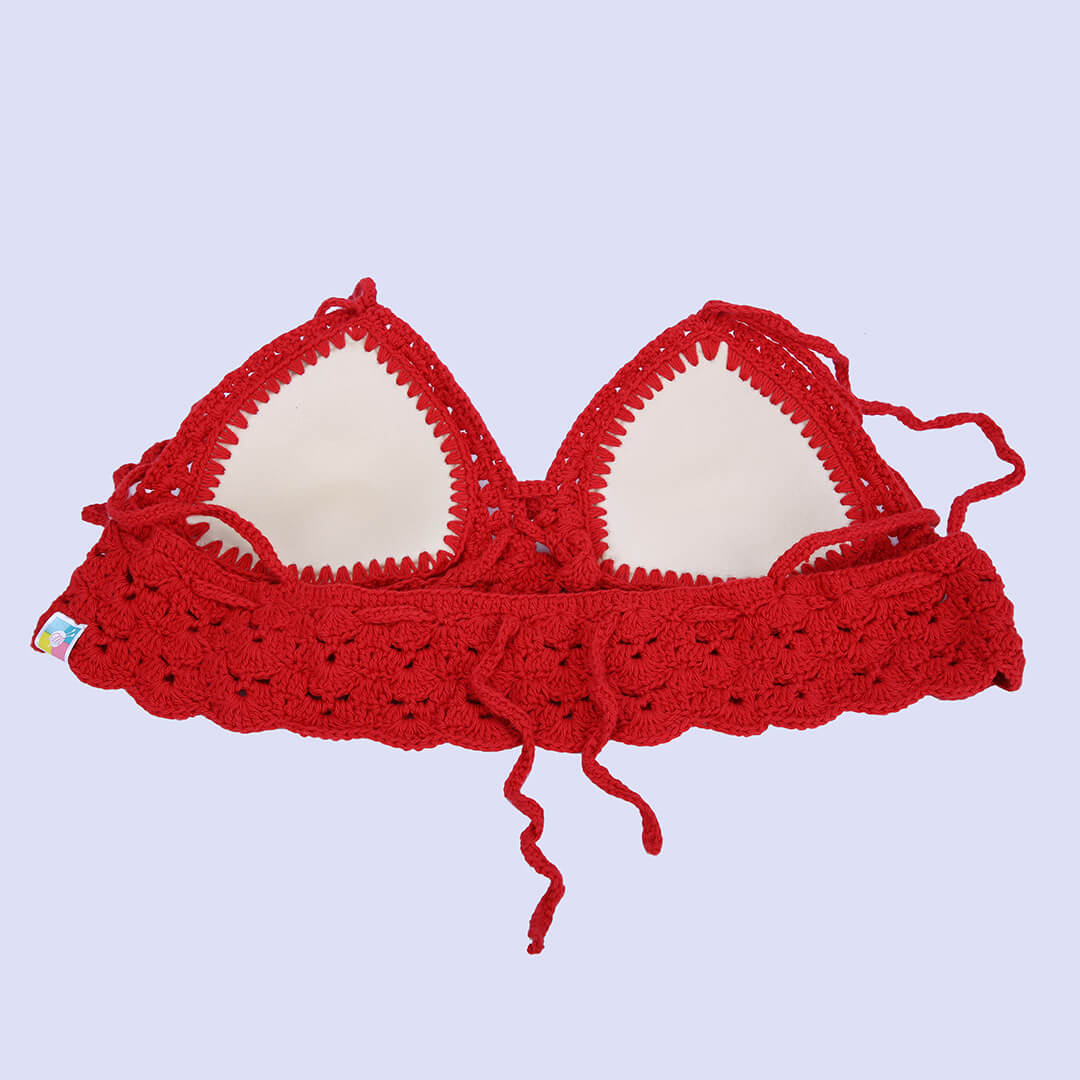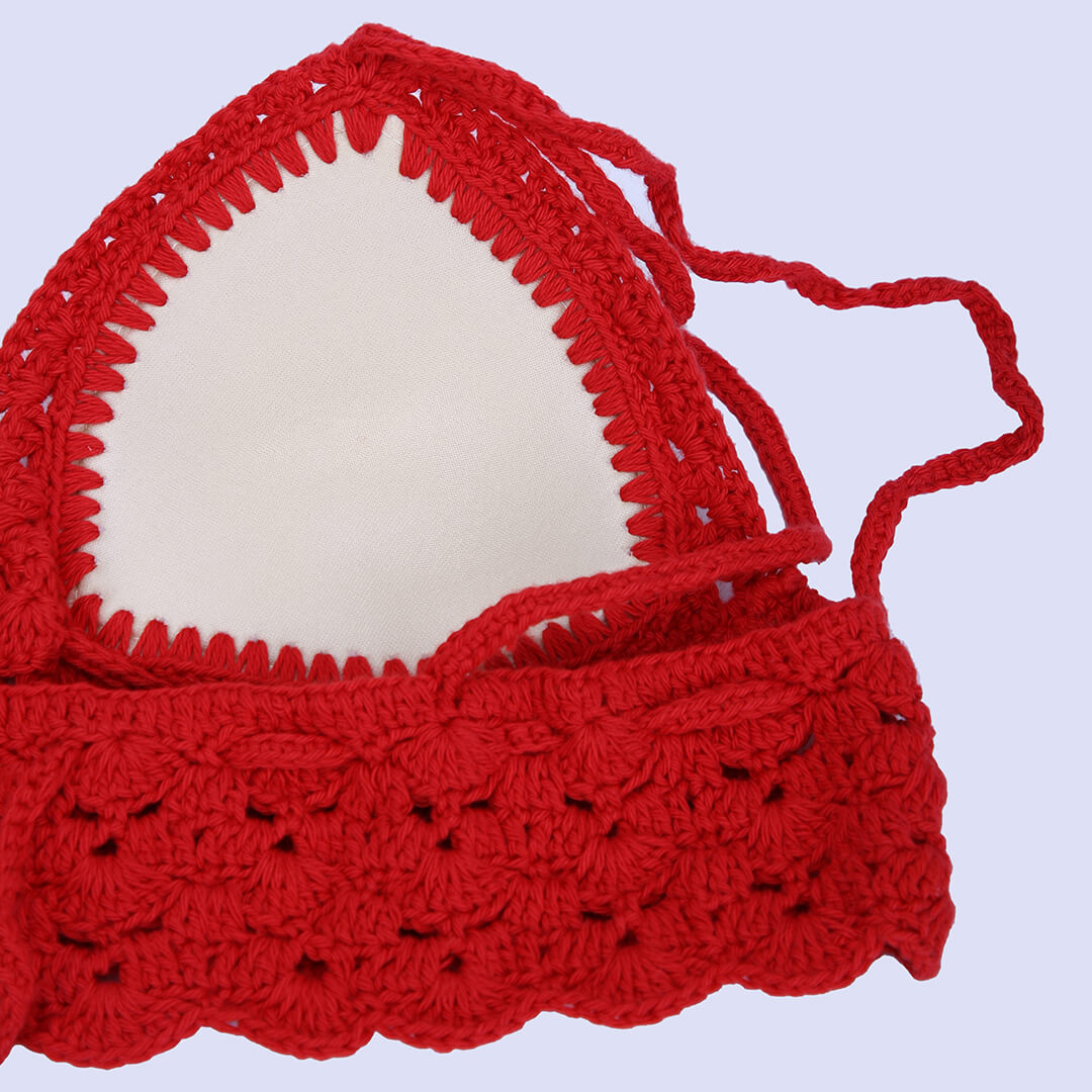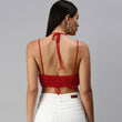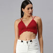Cotton Halter Neck Bralette Crop Top - Maroon 2951