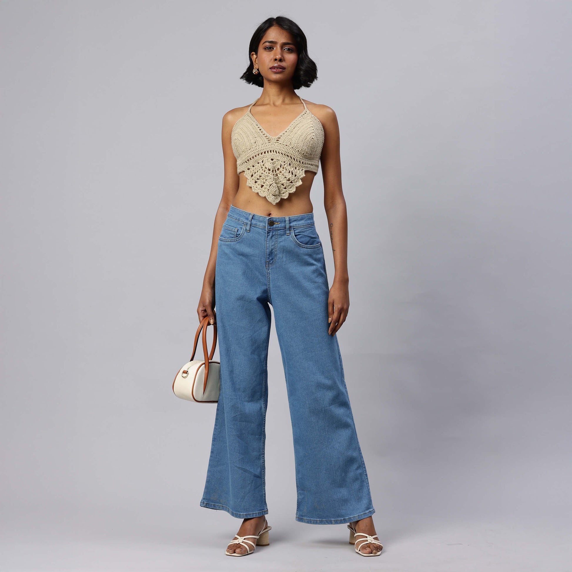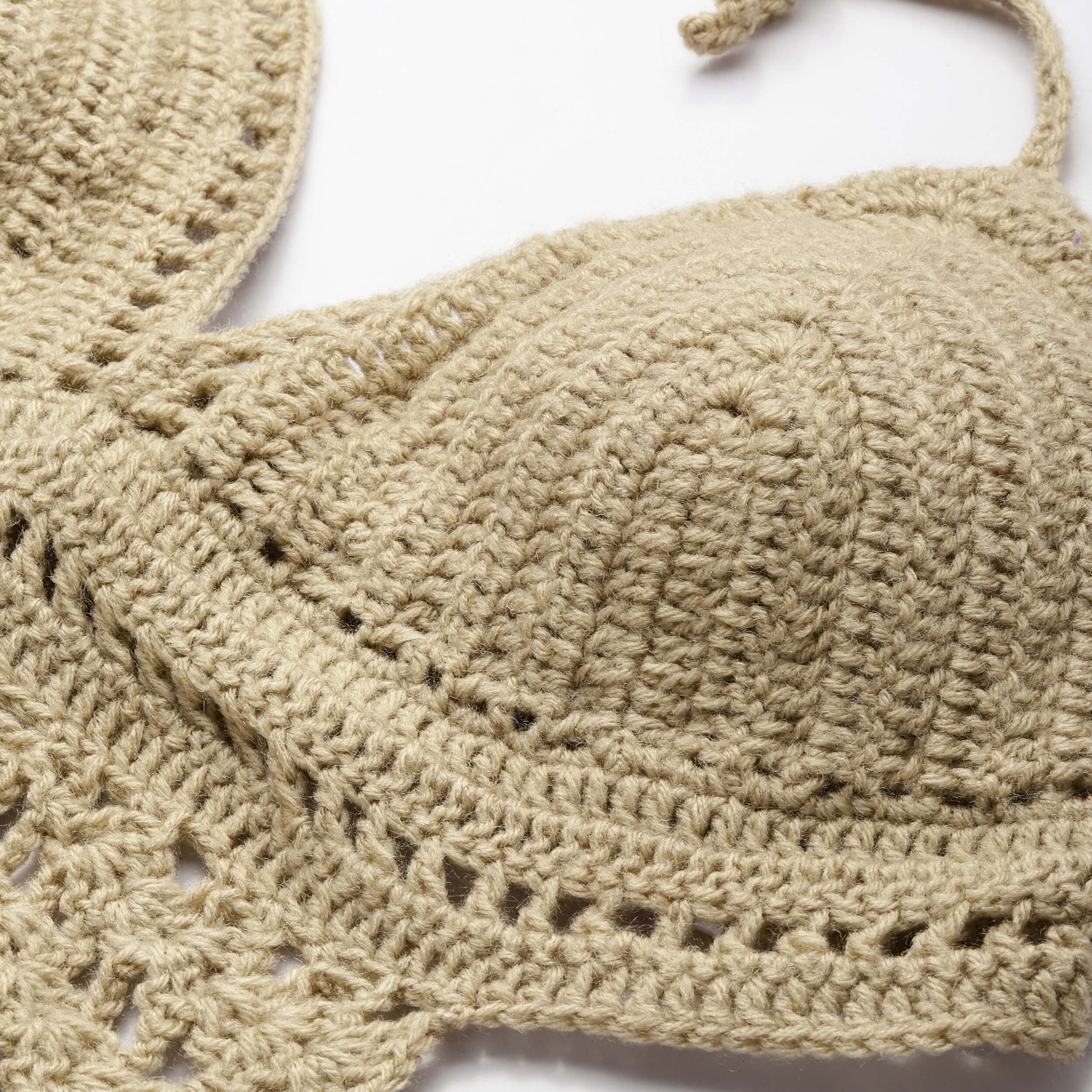 Summer Crochet Bralette Tie Back Sleeveless Top - Beige 10466