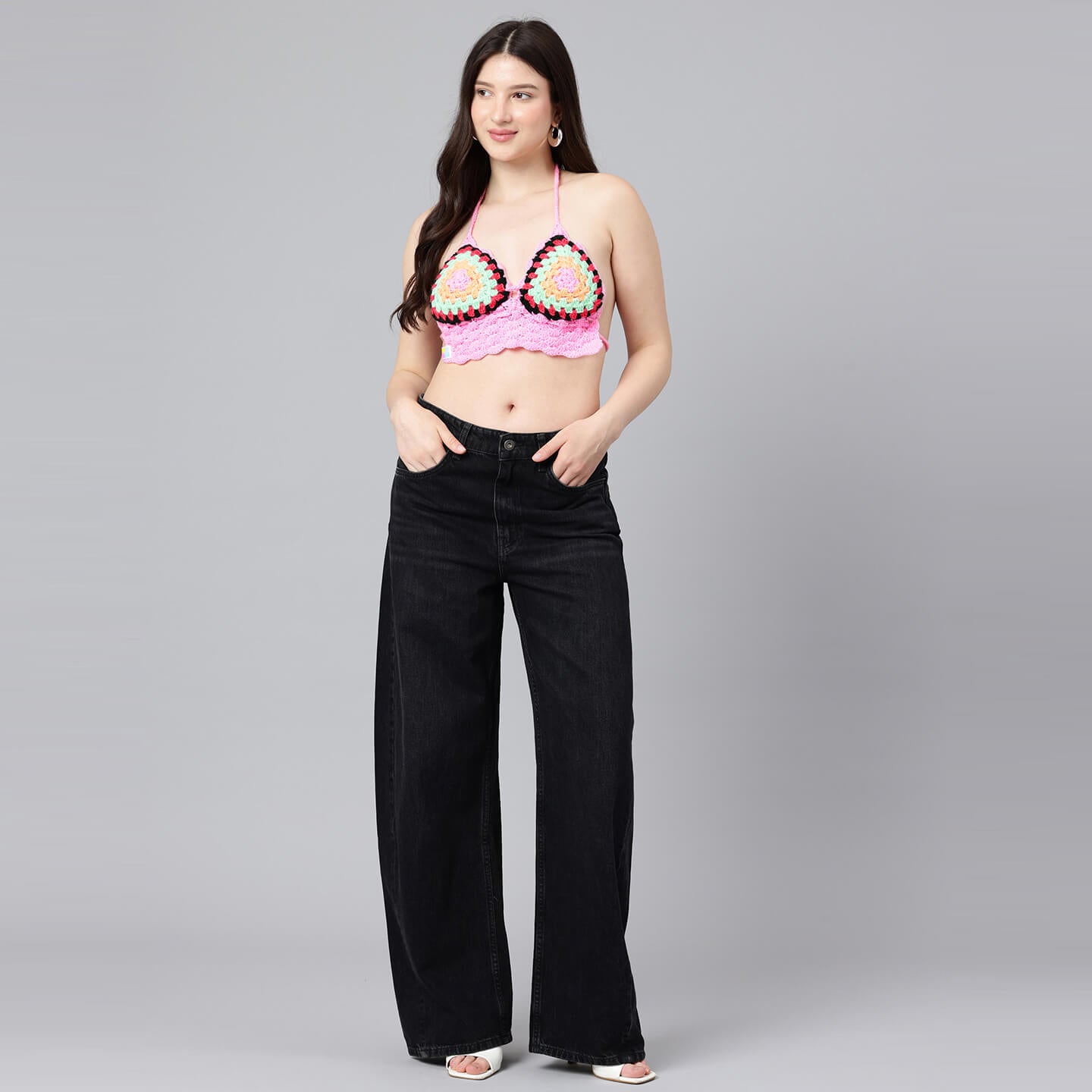 Summer Crochet Bralette Tie Back Sleeveless Top - Multicolor 10575