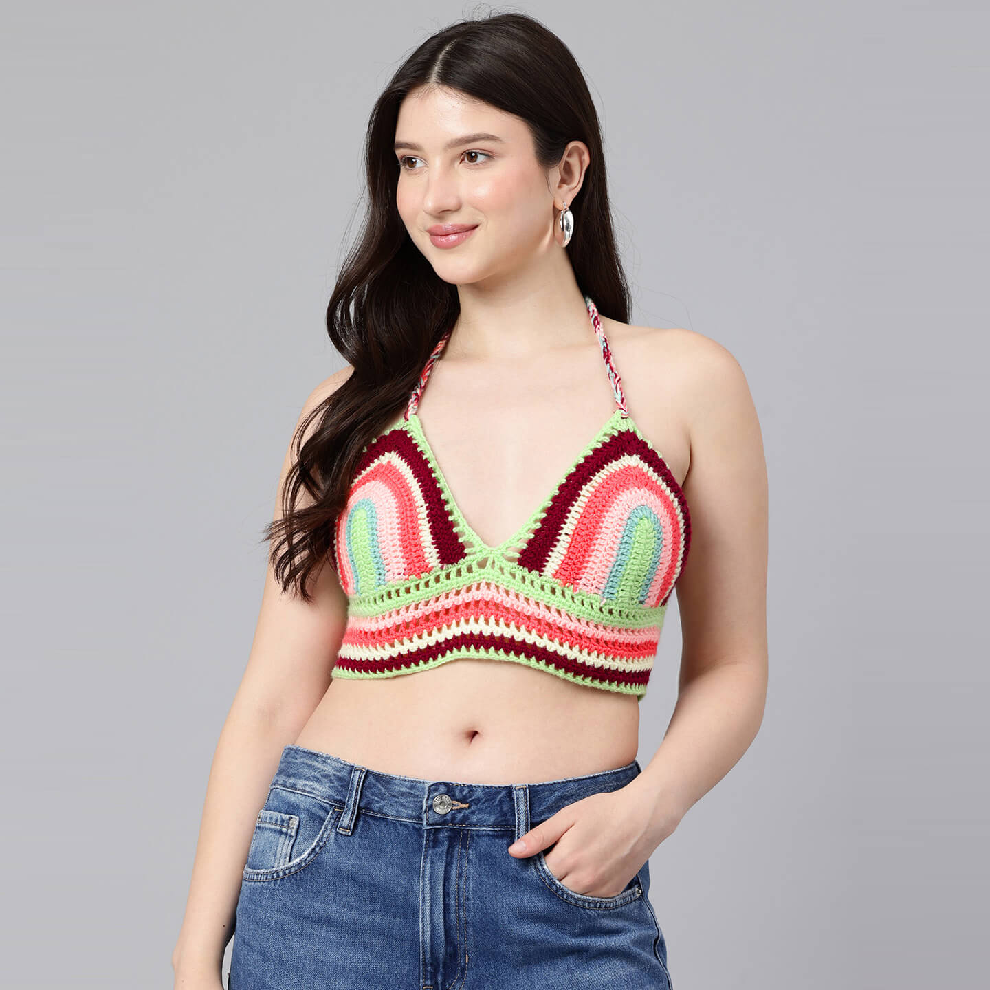Summer Crochet Bralette Tie Back Sleeveless Top - Multicolor 10578