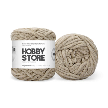 Make a statement with Hobby Store's Super Bulky Chenille Cake Yarn, celebrated as Plush Yarn, Velvet Yarn, or Velour Yarn. This ultra-thick yarn is perfect for oversized blankets, chunky knits, fuzzy amigurumi toys and bold designs. Its fluffy texture guarantees comfort and quick crafting. Designed for easy handling, its ultra-thick, smooth texture and bold velvety colors make it perfect for crafting lasting masterpieces and statement designs.