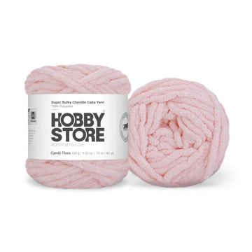 Make a statement with Hobby Store's Super Bulky Chenille Cake Yarn, celebrated as Plush Yarn, Velvet Yarn, or Velour Yarn. This ultra-thick yarn is perfect for oversized blankets, chunky knits, fuzzy amigurumi toys and bold designs. Its fluffy texture guarantees comfort and quick crafting. Designed for easy handling, its ultra-thick, smooth texture and bold velvety colors make it perfect for crafting lasting masterpieces and statement designs.