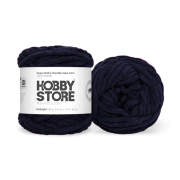 Make a statement with Hobby Store's Super Bulky Chenille Cake Yarn, celebrated as Plush Yarn, Velvet Yarn, or Velour Yarn. This ultra-thick yarn is perfect for oversized blankets, chunky knits, fuzzy amigurumi toys and bold designs. Its fluffy texture guarantees comfort and quick crafting. Designed for easy handling, its ultra-thick, smooth texture and bold velvety colors make it perfect for crafting lasting masterpieces and statement designs.